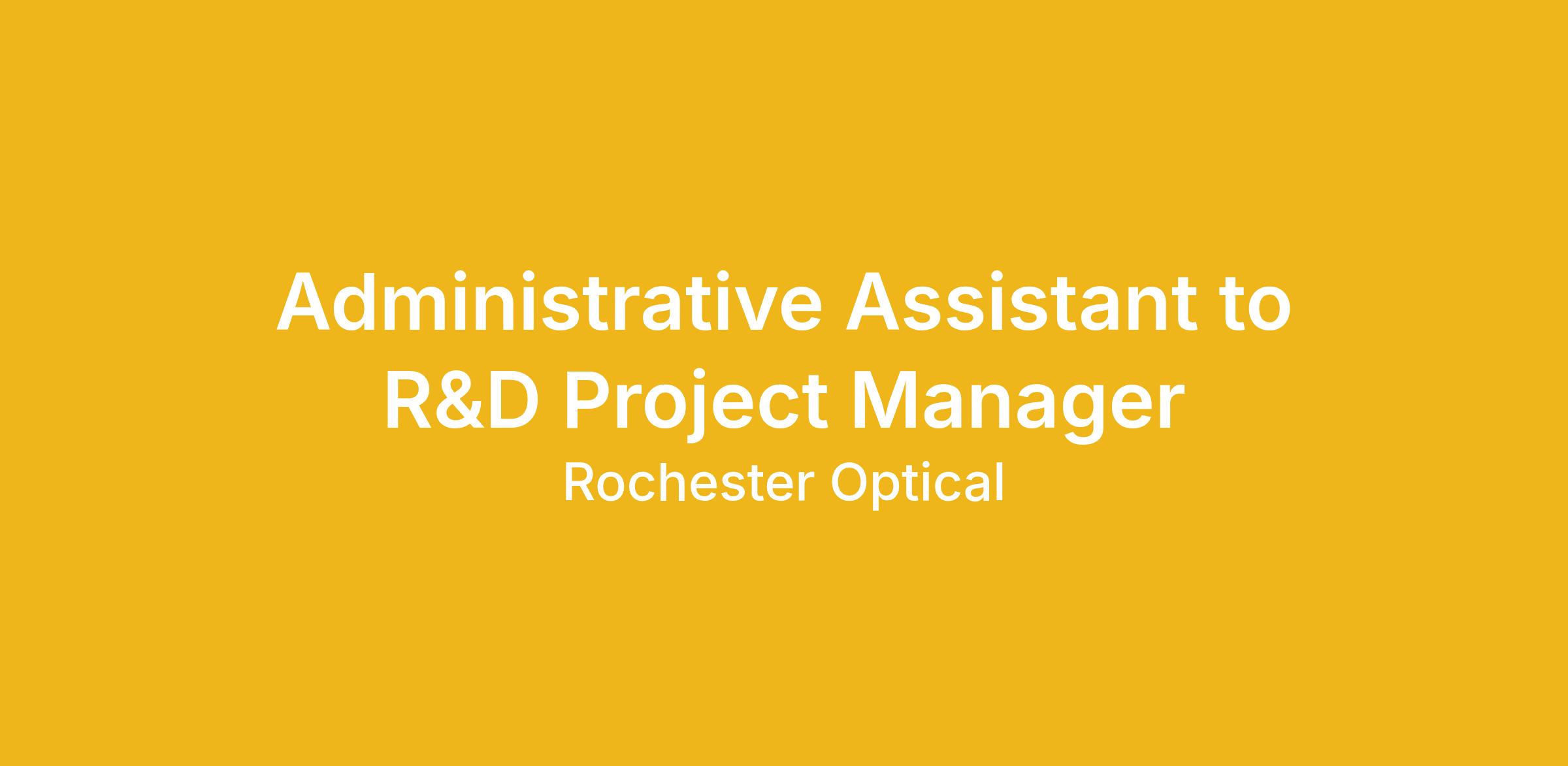 Rochester Optical is seeking an experienced Administrative Assistant to provide comprehensive administrative and organizational support to the Chief Executive Officer (CEO) and the Research & Development Project Manager.