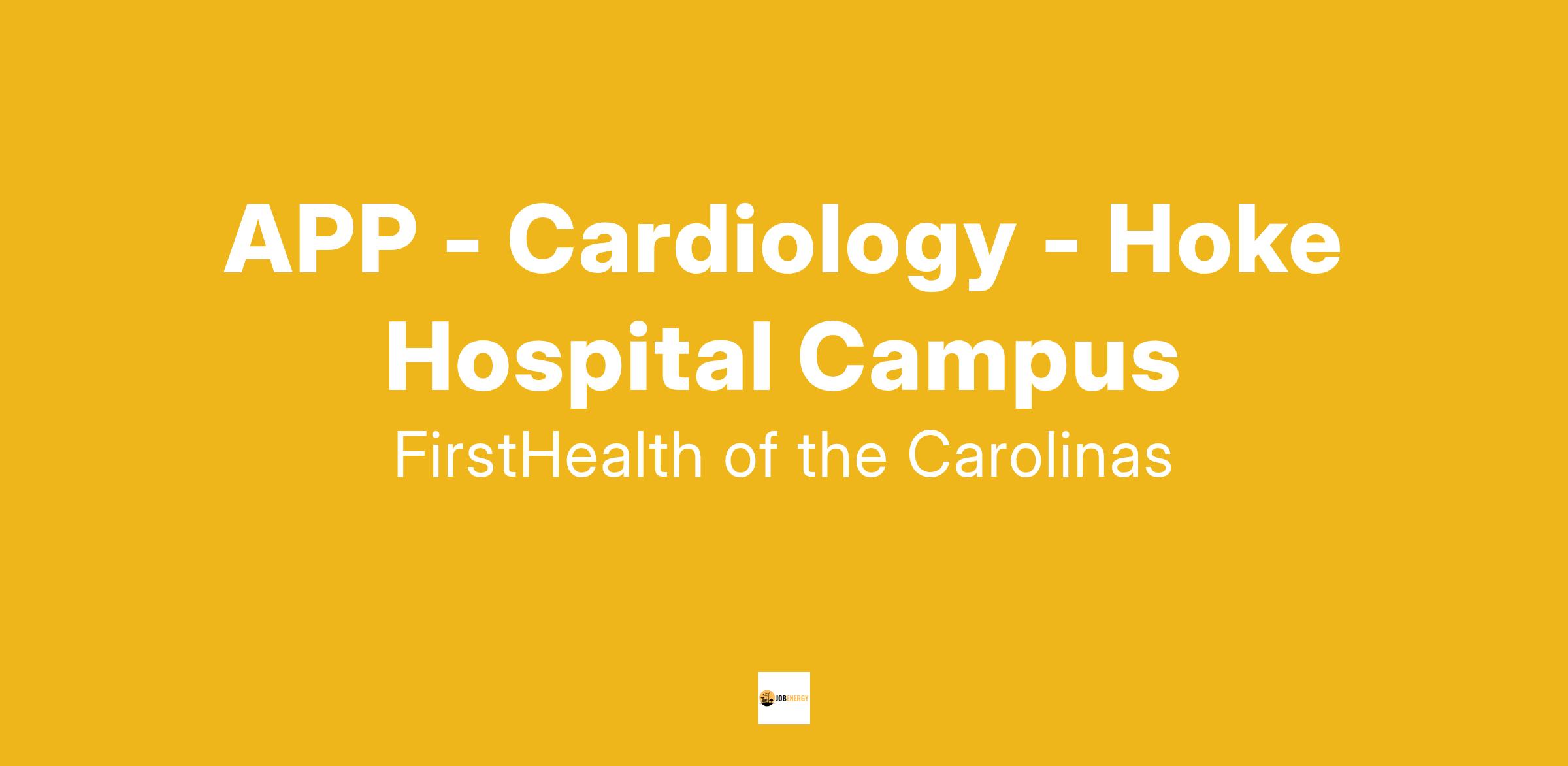 Come grow with us! Thriving, nationally recognized healthcare system invites an experienced Cardiology APP to join our team in Raeford, NC. FirstHealth of the Carolinas is a private, community based, not-for-profit health care network serving the mid-Carolinas.