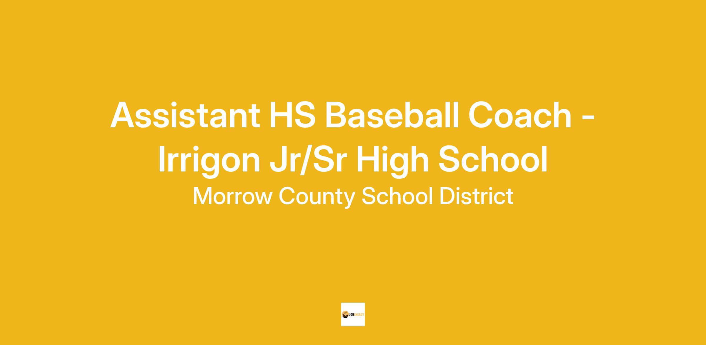 Morrow County School District is accepting applications for an Assistant HS Baseball Coach for Irrigon Jr/Sr High School in Irrigon, OR. Candidate must possess knowledge of baseball skills/fundamentals and must have completed all OSAA required course work.