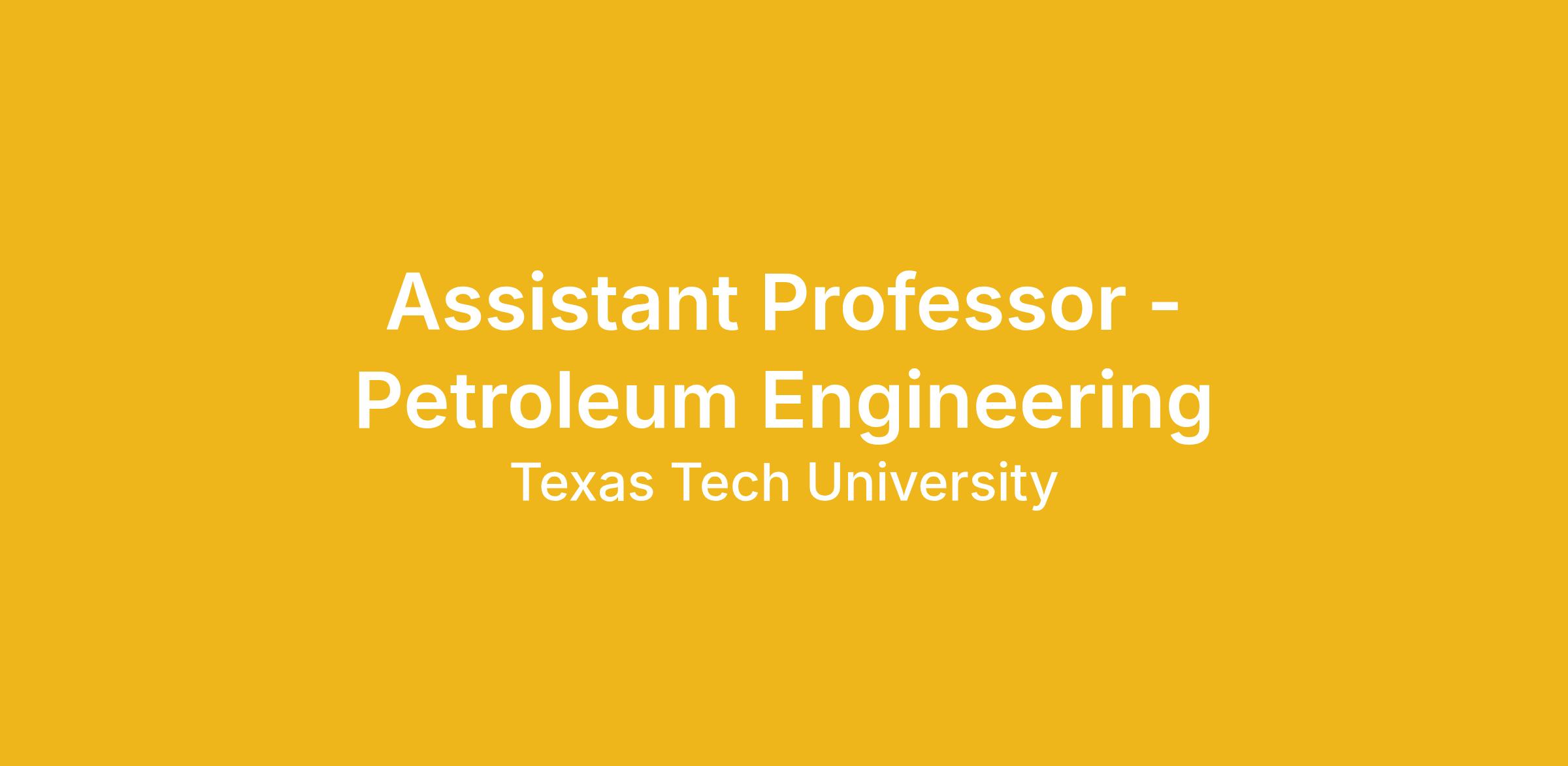 The Bob L. Herd Department of Petroleum Engineering in the College of Engineering at Texas Tech University invites applications for a full-time, 9-month tenure-track Assistant Professor position to begin September 1, 2026.