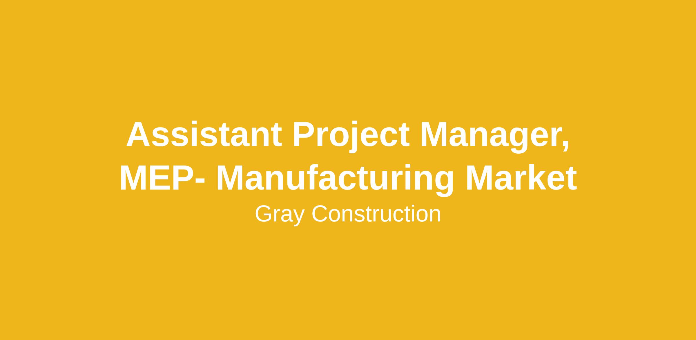 Gray Construction is looking to add an Assitant Project Manager, MEP to its Manufacturing team in our Charlotte, NC Office.