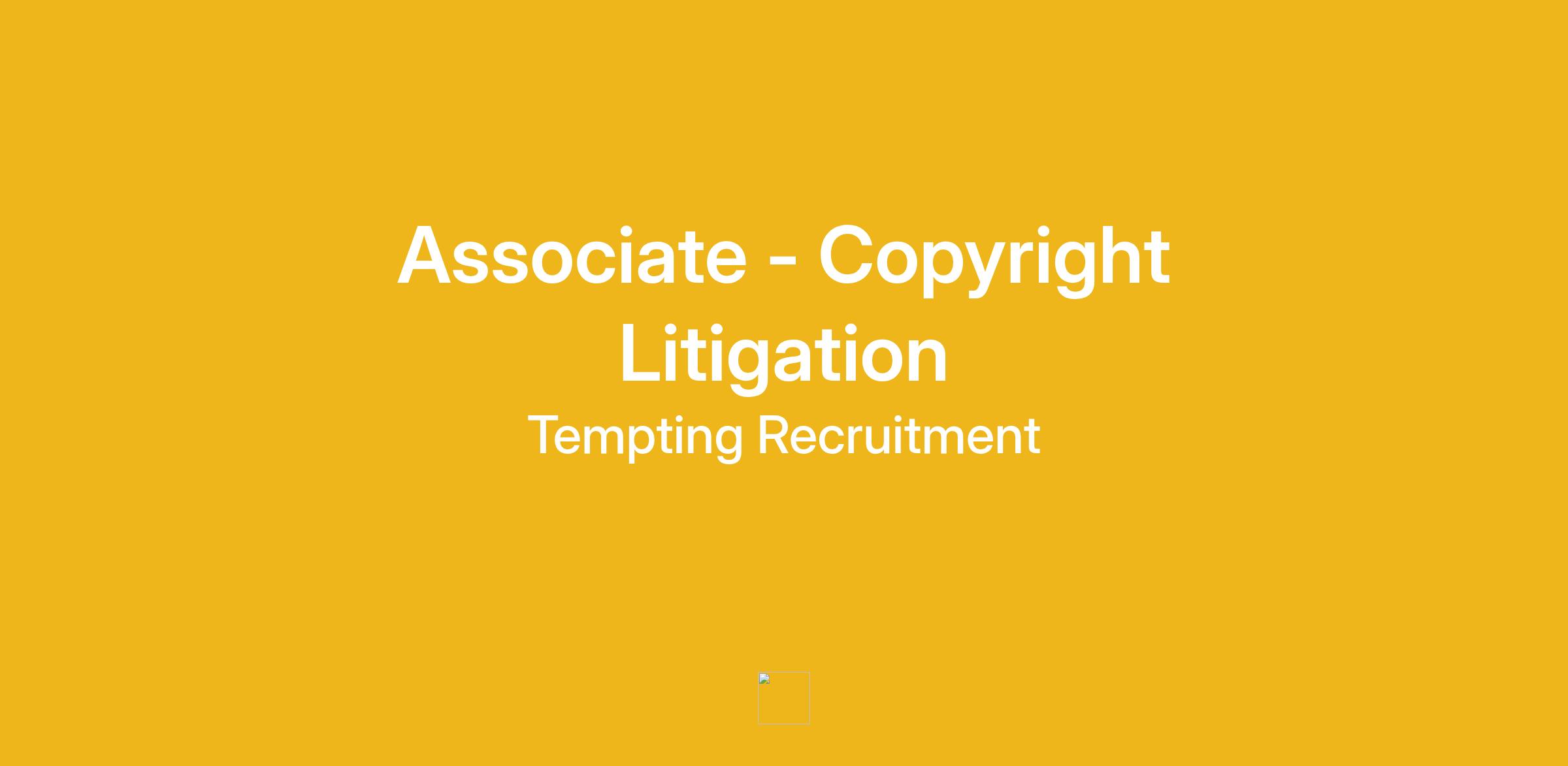 Tempting Recruitment are working alongside our client, a global law firm, who are looking to recruit an experienced Associate to join their Copyright Litigation team based in either their San Francisco or Silicon Valley.