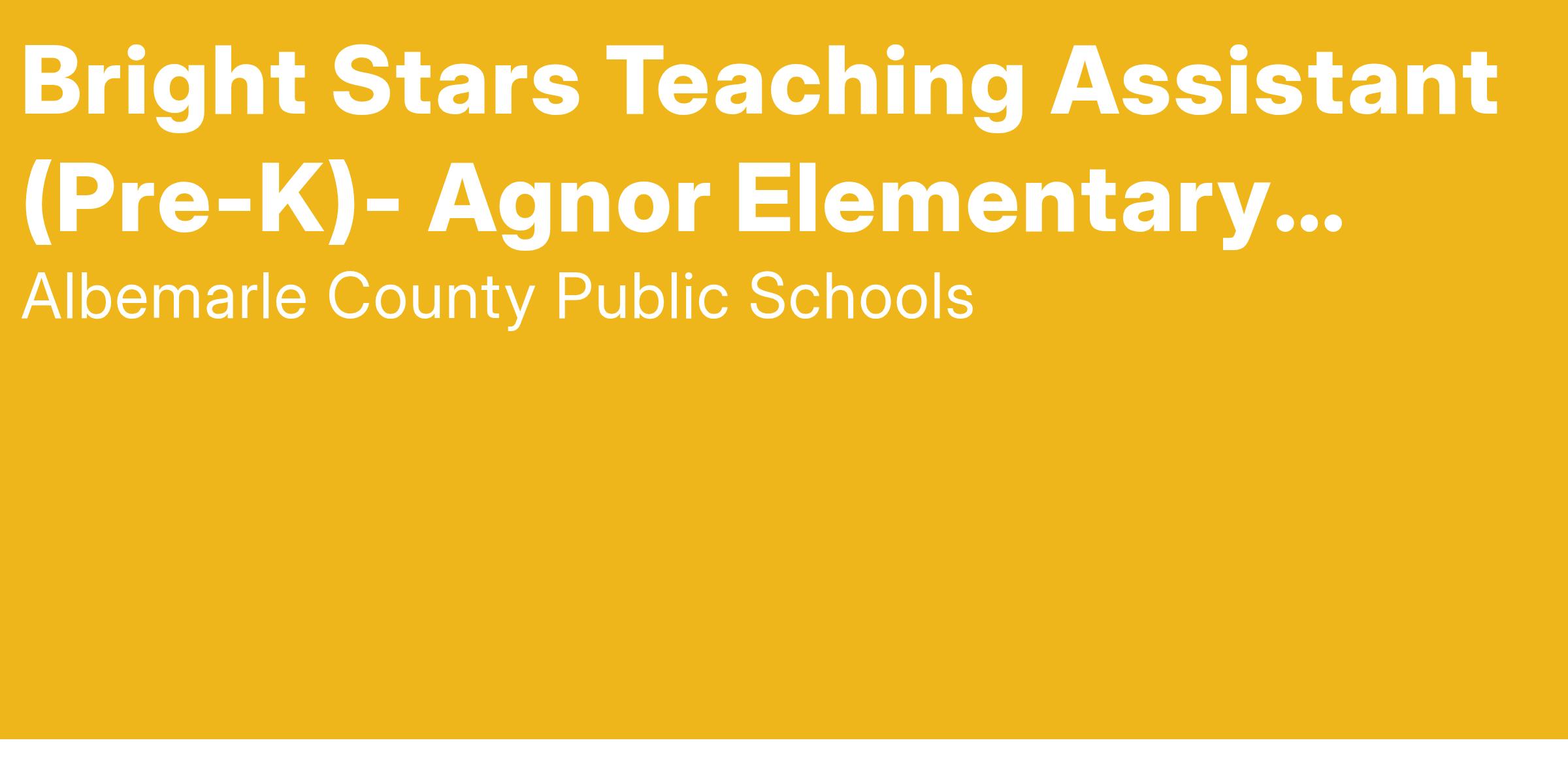Bright Stars Teaching Assistant (Pre-K)