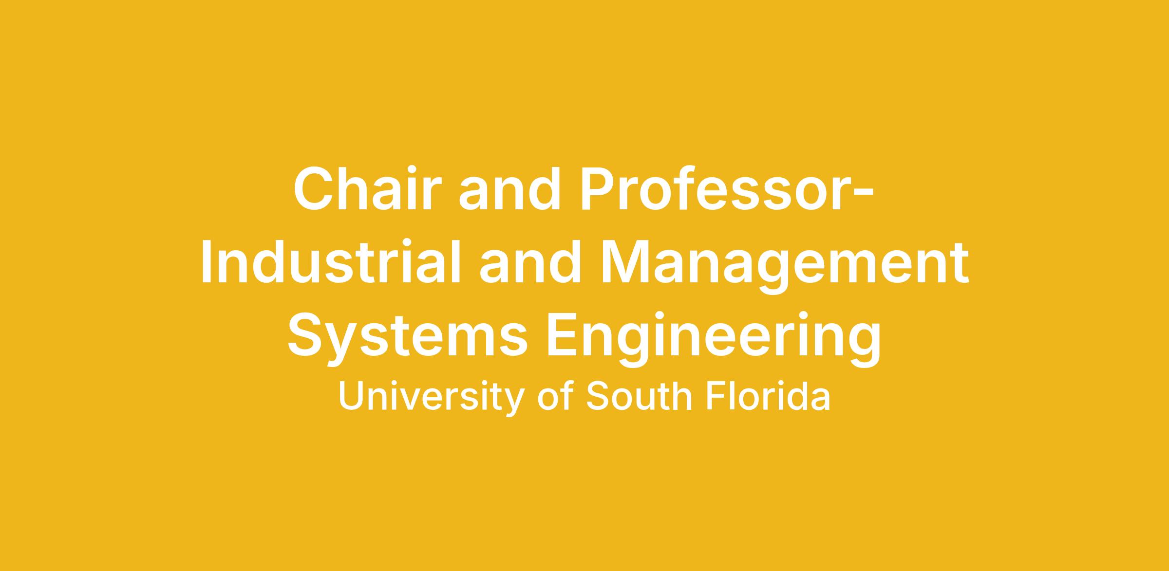 The Department of Industrial and Management Systems Engineering (IMSE) at the University of South Florida (USF) invites applications for the position of Department Chair. This position offers a leadership opportunity in one of the nation’s rapidly rising industrial engineering departments at a top-50 public research university. We seek an accomplished scholar and dynamic leader who will guide a highly productive faculty, respect and strengthen the department’s collaborative culture, address faculty and students’ needs, and foster continued excellence in research, teaching, and service. The successful candidate is expected to provide strategic vision and day-to-day management for the IMSE Department while advancing its role in achieving the College’s strategic mission. Responsibilities include: providing strategic leadership and effective management of departmental operations; promoting a strong research culture aligned with the College’s reputation for scholarly impact; advancing excellence in teaching across all programs; recruiting, mentoring, and retaining talented faculty and staff; managing resources and budgets effectively; strengthening relationships with industry partners, alumni, and donors; and collaborating with other department chairs and college leadership.