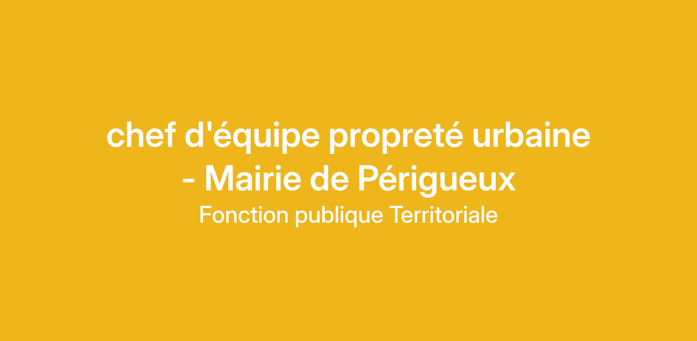 La Ville de PERIGUEUX, préfecture de la Dordogne, classée 40 000 – 80 000 habitants, à 1H30 de Bordeaux par l’A89, 3H de Toulouse par l’A20, ville « 4 fleurs », ville d’art et d’histoire et ville universitaire, ville amie des enfants, ville amie des aînés, adhérente à l’association Nos Quartiers ont des Talents, au cœur du Périgord recrute un(e) chef(fe) d’équipe propreté urbaine.