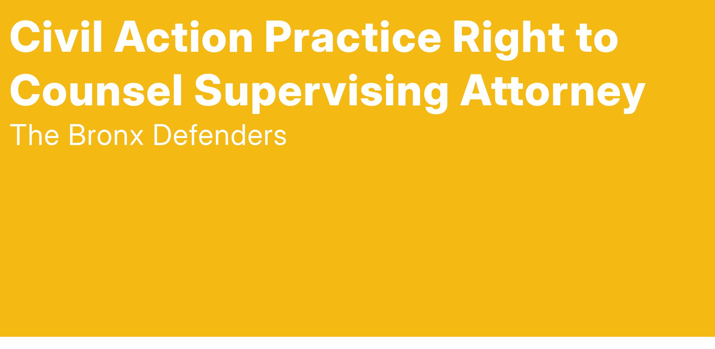 Recognizing the expanding and evolving landscape of our Housing Right to Counsel work, The Bronx Defenders seeks a passionate Supervising Attorney with a commitment to housing justice to supervise our Right to Counsel Housing Team (RTC Housing Team) in the Civil Action Practice (CAP). Reporting to the Housing Team Director, the Supervising Attorney will represent a reduced caseload of clients and directly supervise RTC housing team attorneys, advocates and other staff.