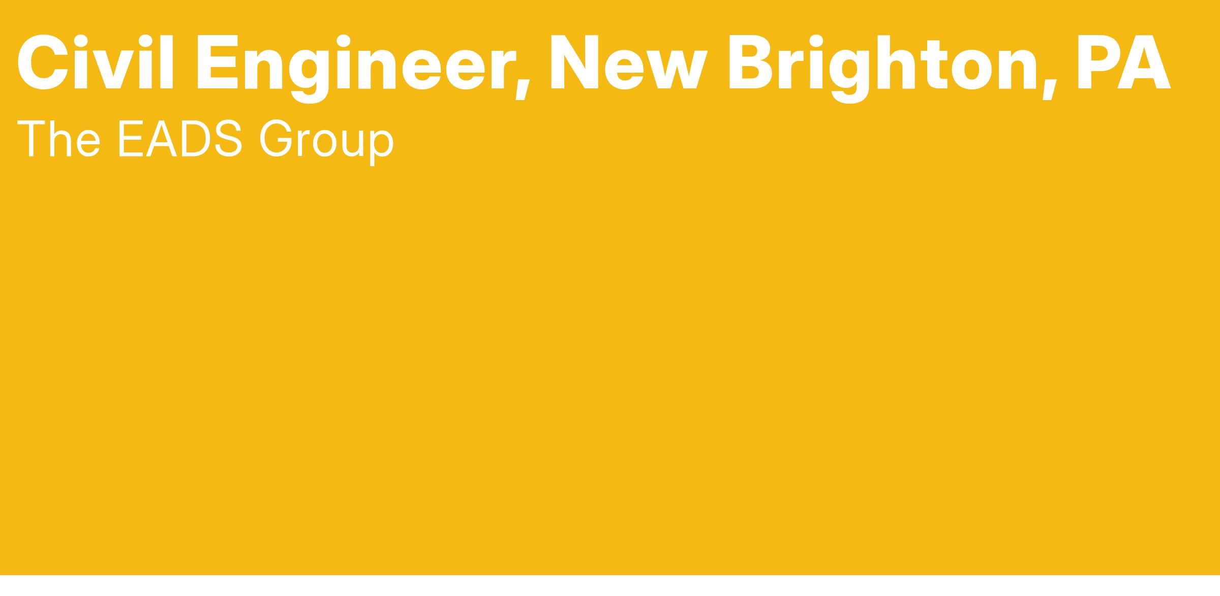 The EADS Group, Inc. is actively seeking a Civil Engineer to be part of our growing multi-discipline consulting engineering firm. As part of this growth we are accepting applications to work at our newest office location in New Brighton, PA. This position will support our current clients and workload that includes municipal engineering, site development and natural gas distribution. Position is responsible to assist with client and project management under direction of a Project Manager.
