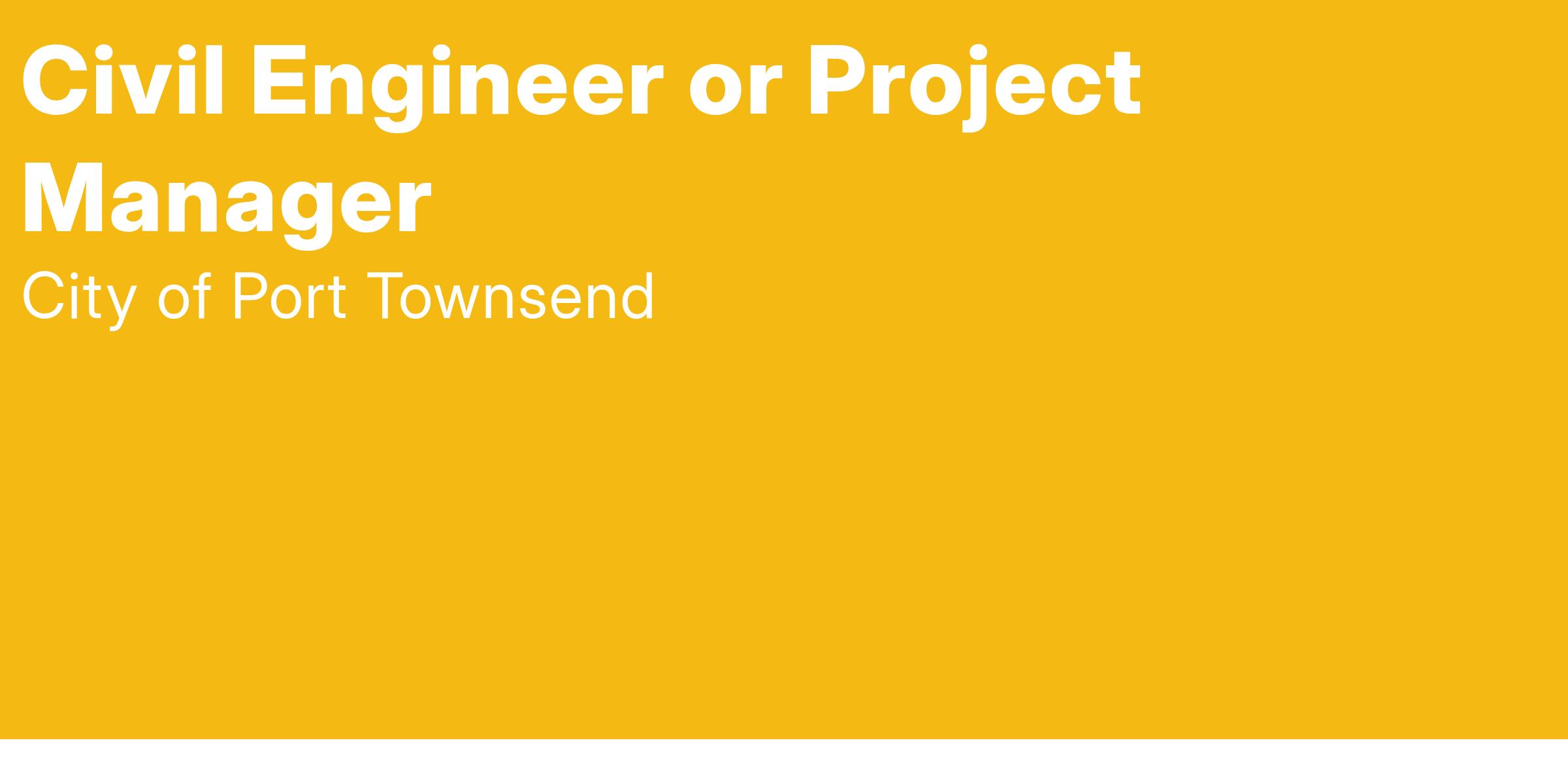 The City of Port Townsend is recruiting to fill one opening in our Public Works Engineering division to focus on transportation projects. The position may be filled at any of the levels described below, depending on qualifications. Complete job descriptions are available here.