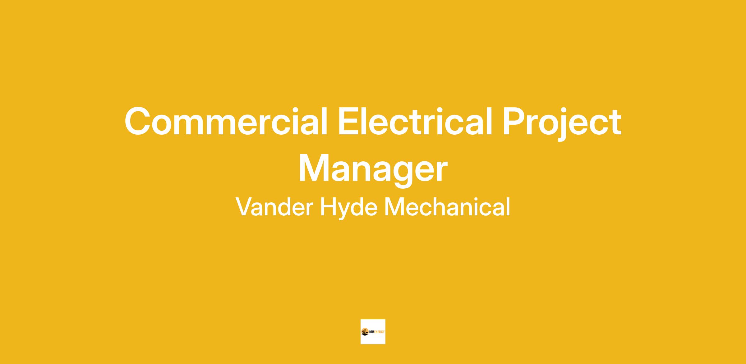 Vander Hyde Mechanical is looking for a Commercial Electrical Project Manager.