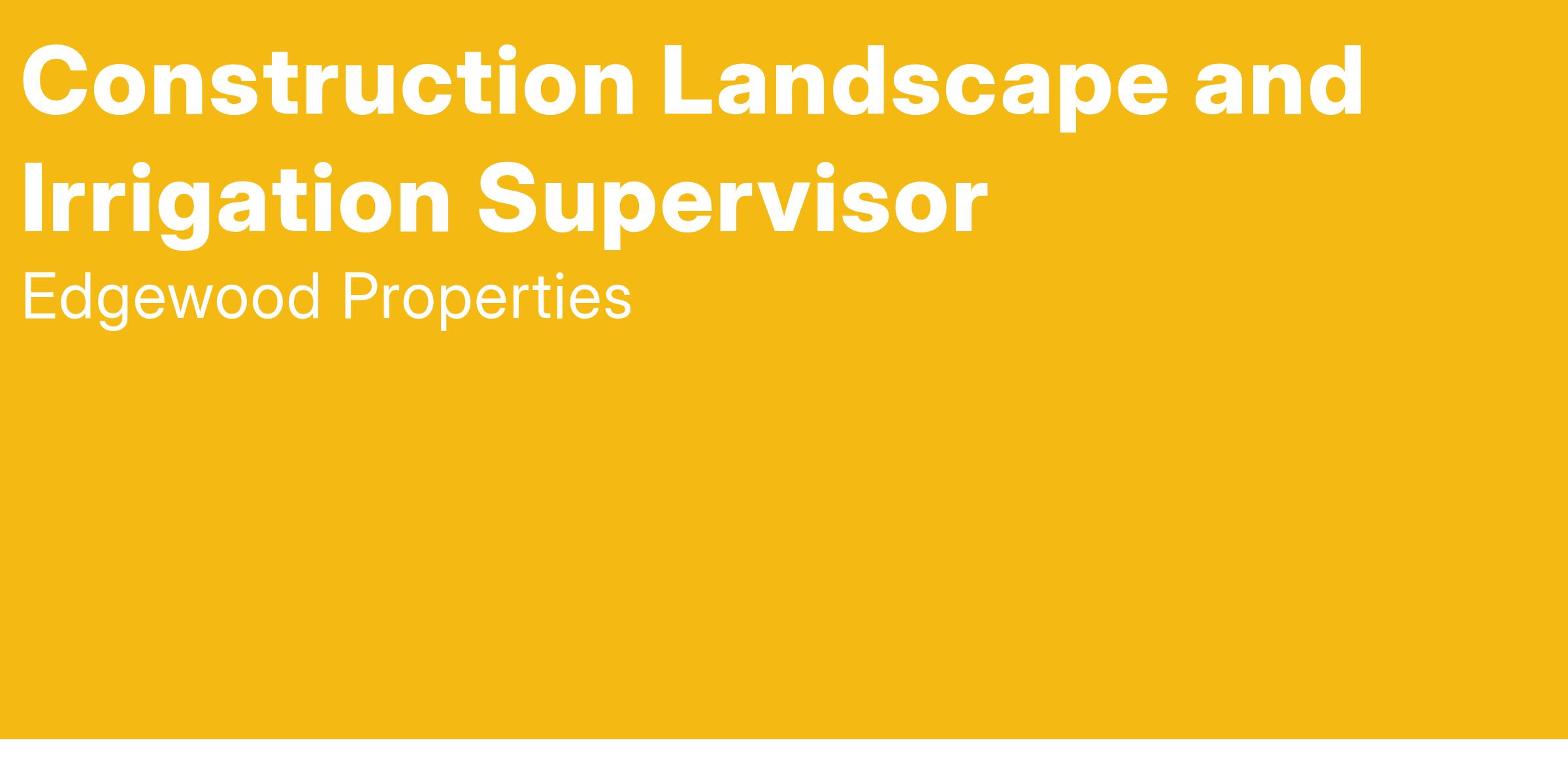 The Construction Landscape and Irrigation Supervisor oversees all landscape and irrigation activities during construction projects.