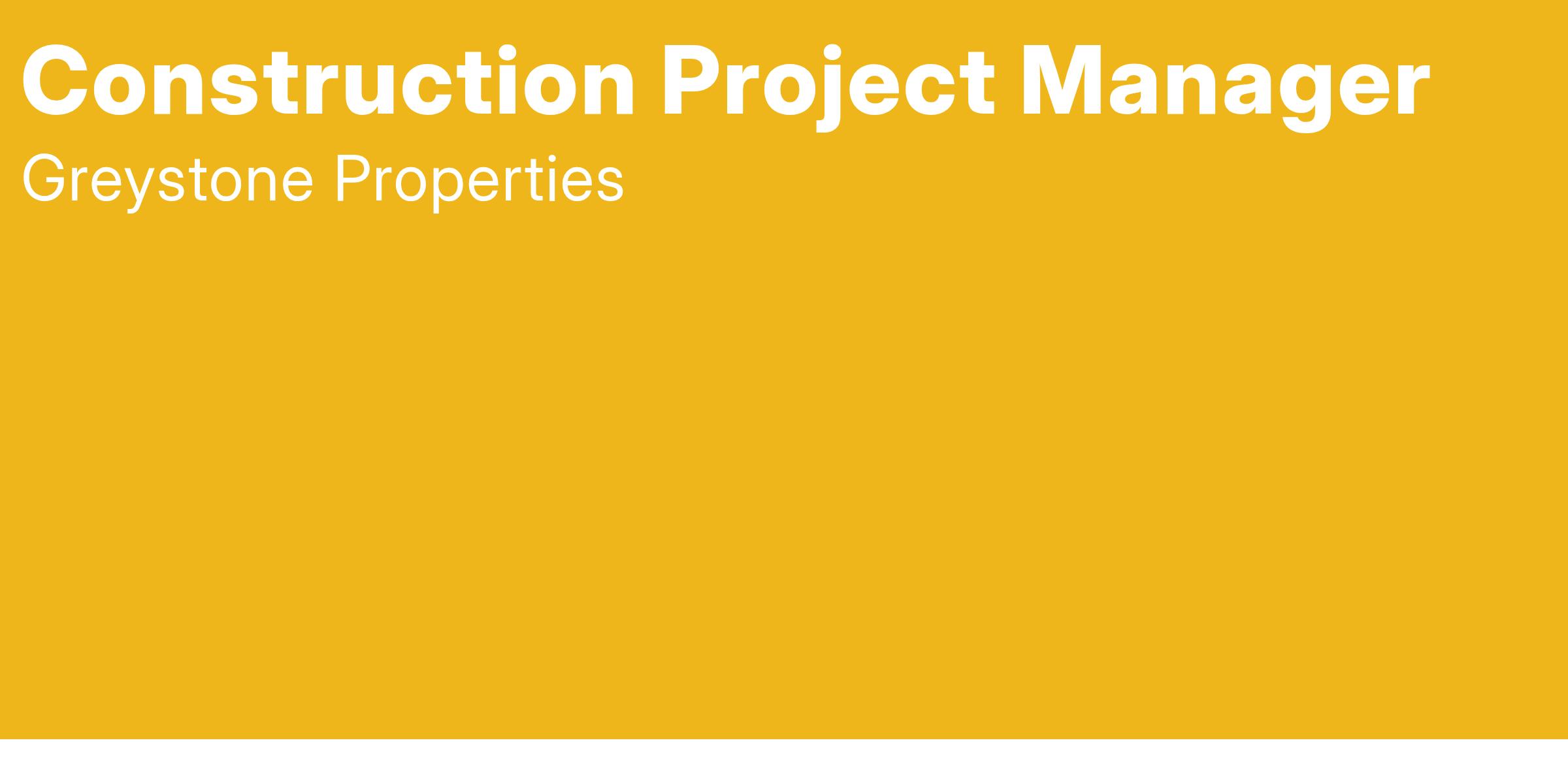The Construction Project Manager (PM) primarily oversees the office functions of the development/construction of multi-family communities and miscellaneous construction projects from the inception of the project to the completion of obtaining Certificate of Occupancies and punch-out. This would include but is not limited to the estimating, contractor bidding, value engineering, quality control, job safety and design alternatives. The PM reports directly to Will White. The PM is to represent, promote and protect the interests of Greystone Properties, LLC/WLB, LLC and/or other related parties in all matters.