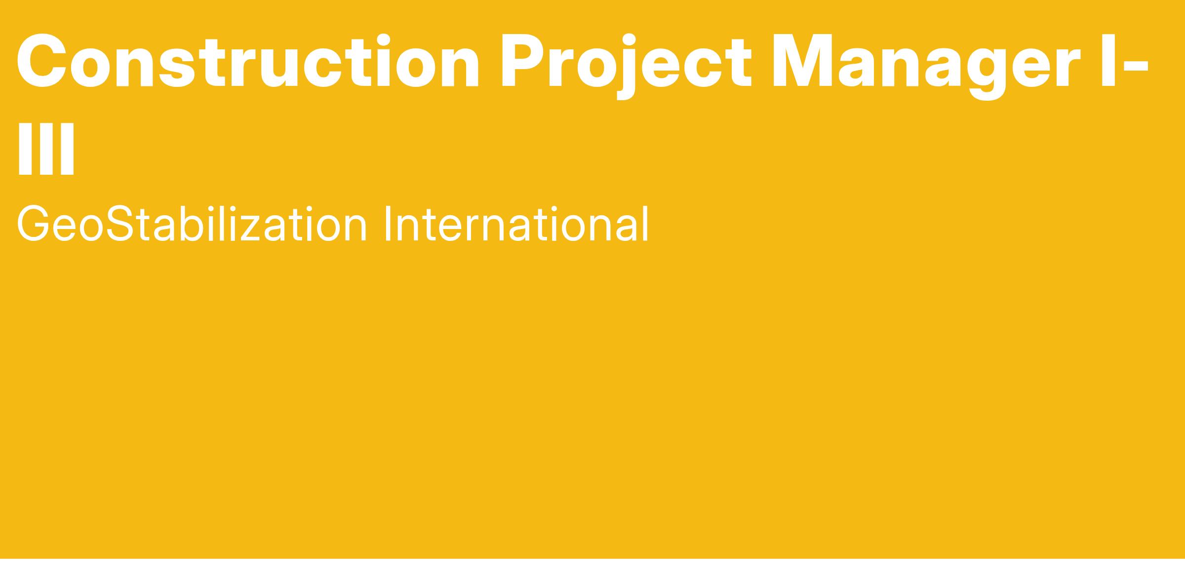GeoStabilization International, LLC. is an equal opportunity employer, and all qualified applicants will receive consideration for employment without regard to race, color, religion, sex, sexual orientation, gender identity or expression, pregnancy, age, national origin, disability status, genetic information, protected veteran status, or any other characteristic protected by law.