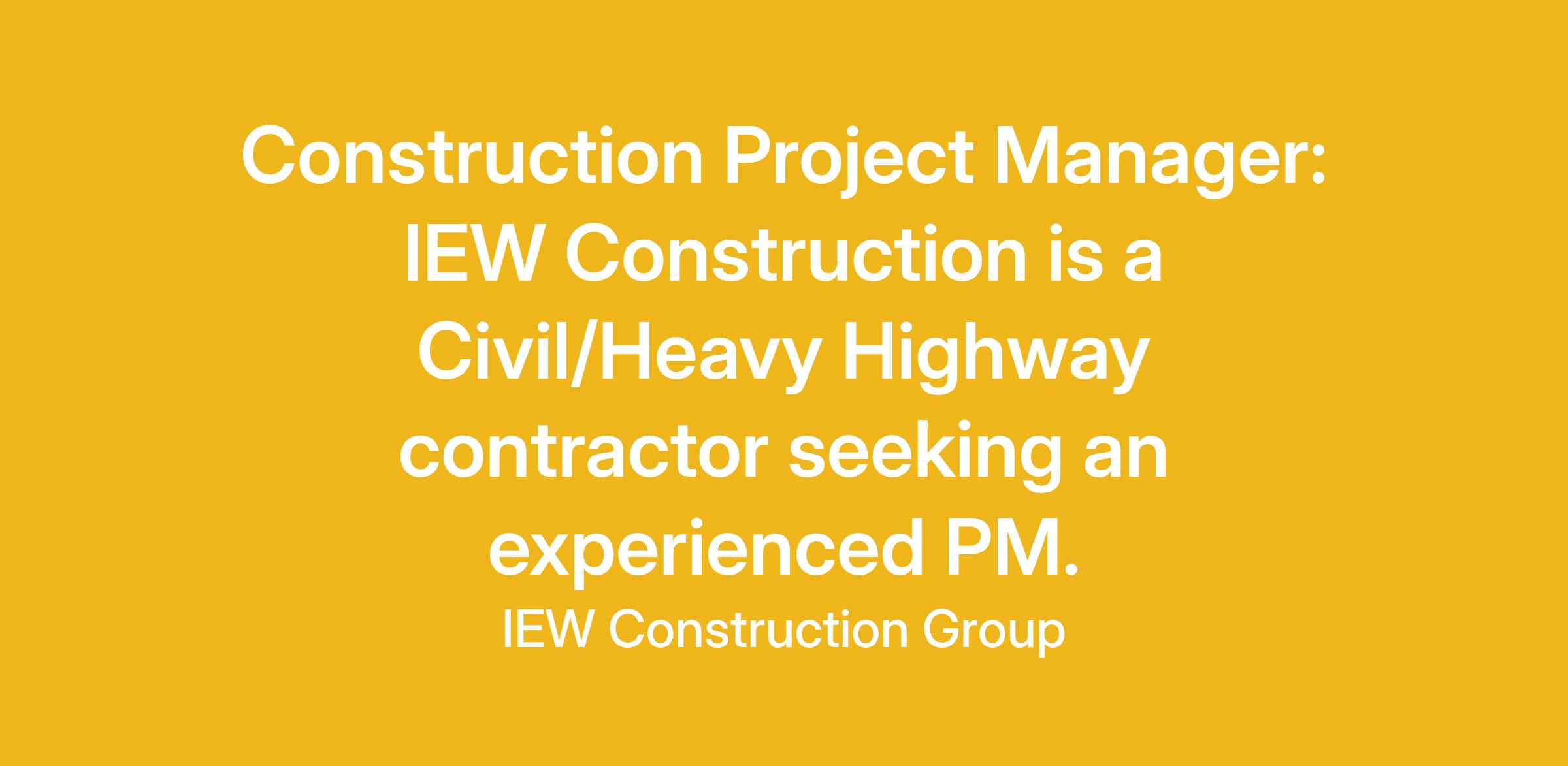 IEW Construction Group is a NJ based general contractor that specializes in heavy highway and bridge construction. Pile foundations, concrete construction, sitework, excavation, emergency maintenance, as well as marine construction. Since 1925, IEW Construction Group has built its successful reputation on its commitment to customer satisfaction. Our mission is to maintain our leadership position and reputation for Excellence in Construction by continually setting new standards. The Project Manager provides overall management of detailed and complex construction projects. This position is accountable for all aspects of a project's success from the initial preconstruction planning and procurement, to final completion. Additionally, this position provides direct support to other functional project teams in the planning and execution of the job including resolving issues, managing resources, project coordination, and interfacing with client representatives regarding the projects progress.