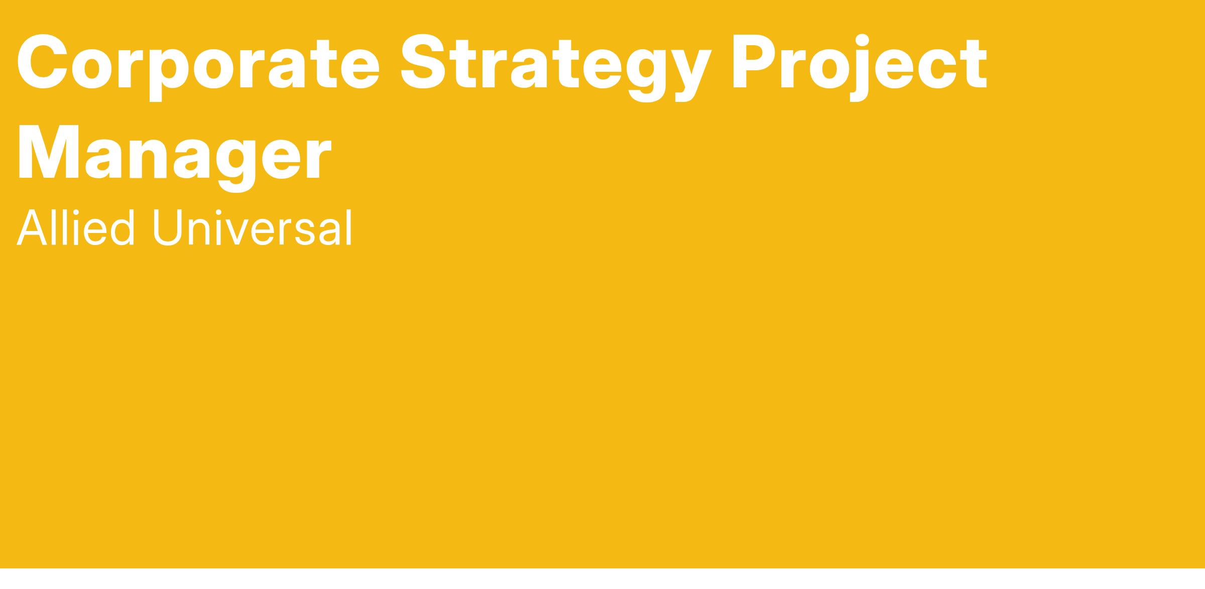 Allied Universal® is hiring a Corporate Strategy Project Manager. The Project Manager is a core member of the Corporate Strategy team. Activities will include executing analysis, developing proposed action items, and leading initiatives related to margin improvement, integration support, and operational support to the field.