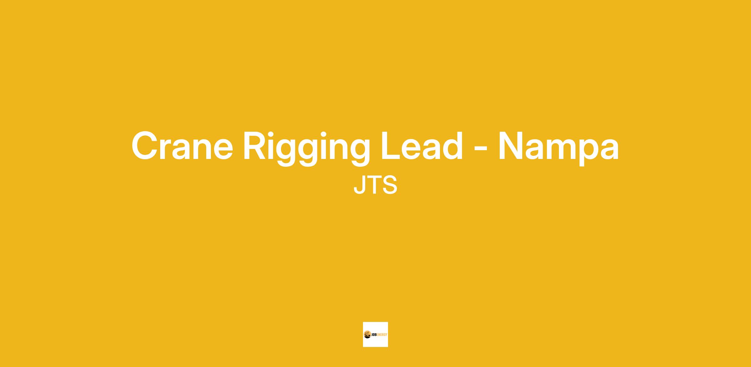 Summary: The Crane Rigging Lead at JTS leads the Rigging team in executing complex and high-risk lifting operations for generator unit assembly and related projects. This role serves as the primary point of contact for rigging strategy, safety compliance, and team coordination. It requires expert-level rigging knowledge, strong leadership capabilities, and a proactive approach to continuous improvement. The Lead collaborates with cross-functional teams to ensure all rigging activities meet the highest standards of safety, quality, and efficiency. Accountabilities: