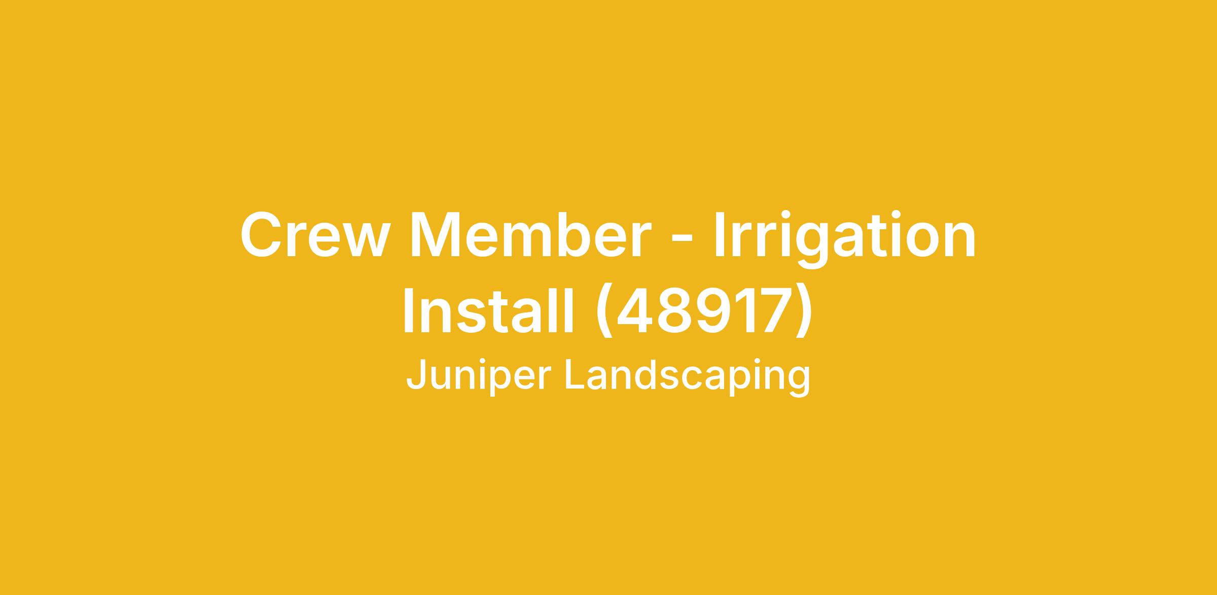 Juniper is Growing! We are seeking Irrigation Install Crew Members to work with our teams on high-end landscaping projects. Our crew members perform work with the team on our jobsites in a safe and quality manner to ensure beautiful landscapes for our clients.