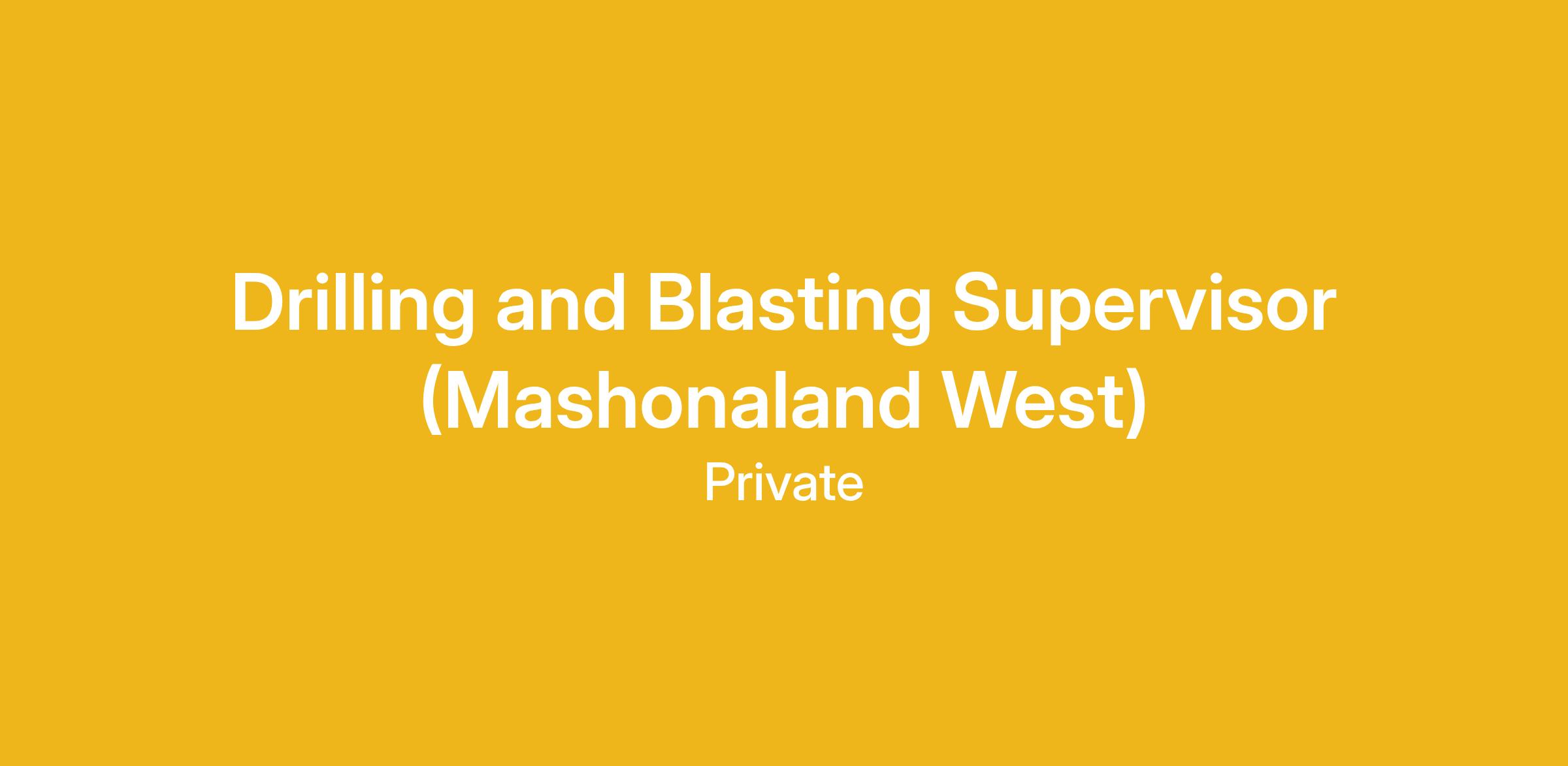 We are seeking for an experienced Drilling and Blasting Supervisor to join our team in Mashonaland West (Zimbabwe).