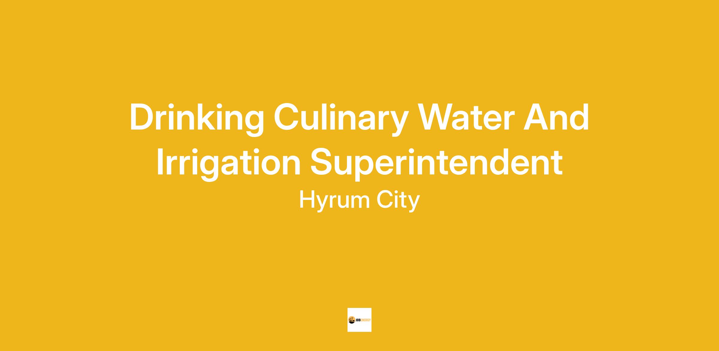 The Water and Irrigation Superintendent for Hyrum City will (see complete job description at www.hyrumcity.org):