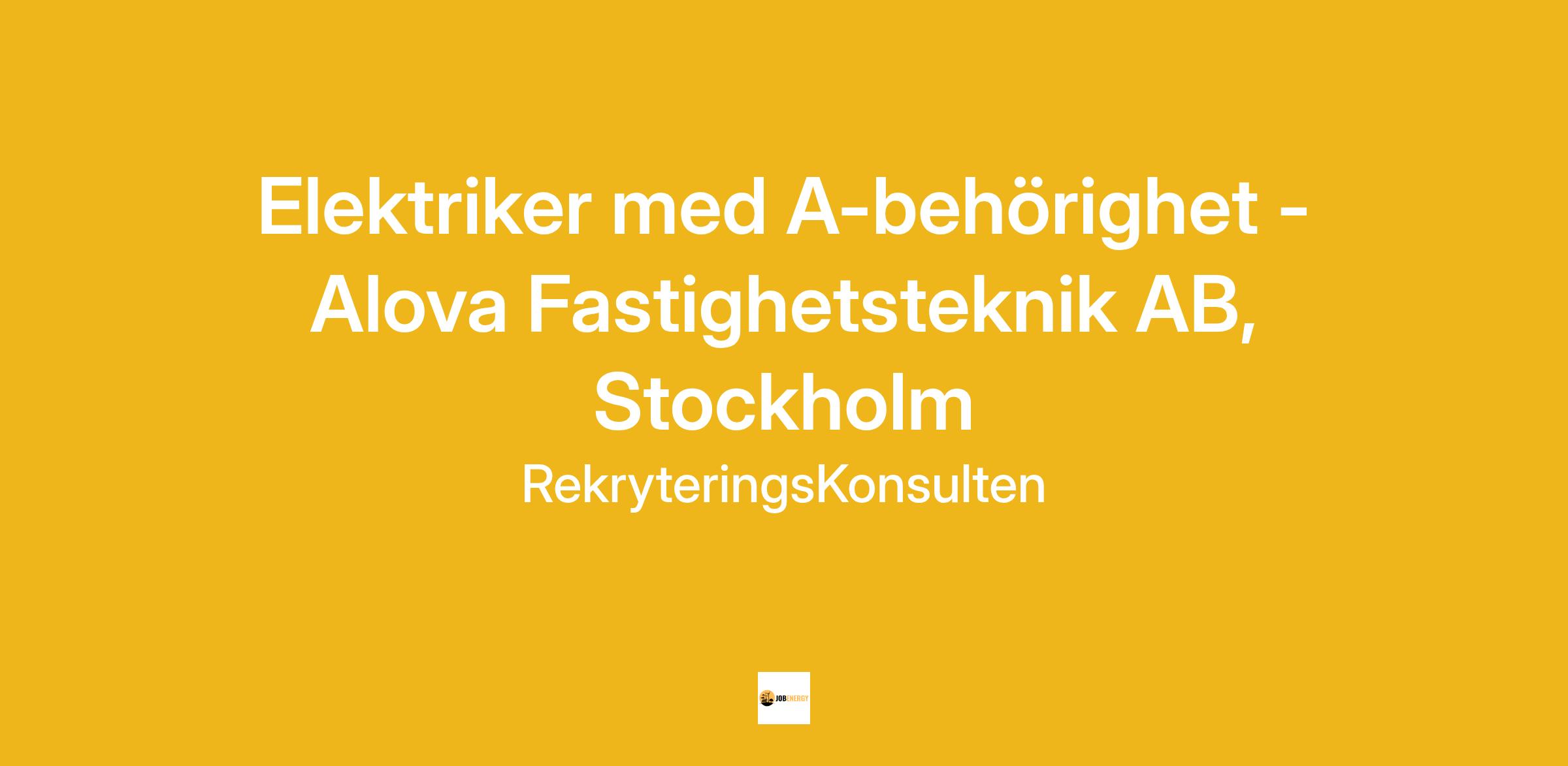 ELEKTRIKER MED A-BEHÖRIGHET - ALOVA FASTIGHETSTEKNIK AB, STOCKHOLM