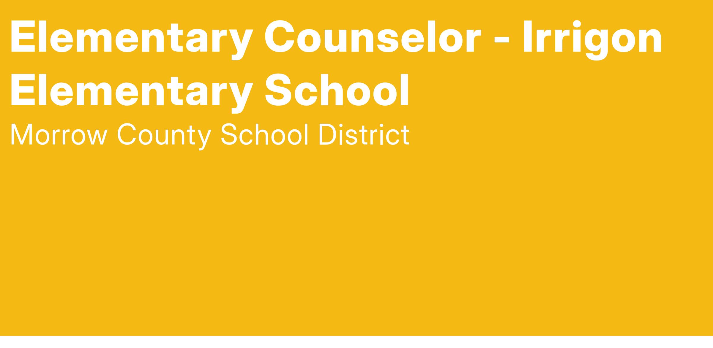 Morrow County School District has an opening for an Elementary School Counselor at Irrigon Elementary School in Irrigon, OR, beginning with the 2025-26 school year. Candidate must possess or be able to obtain full Oregon Licensure with proper grade level authorization, endorsement in school counseling, and must be Highly Qualified.