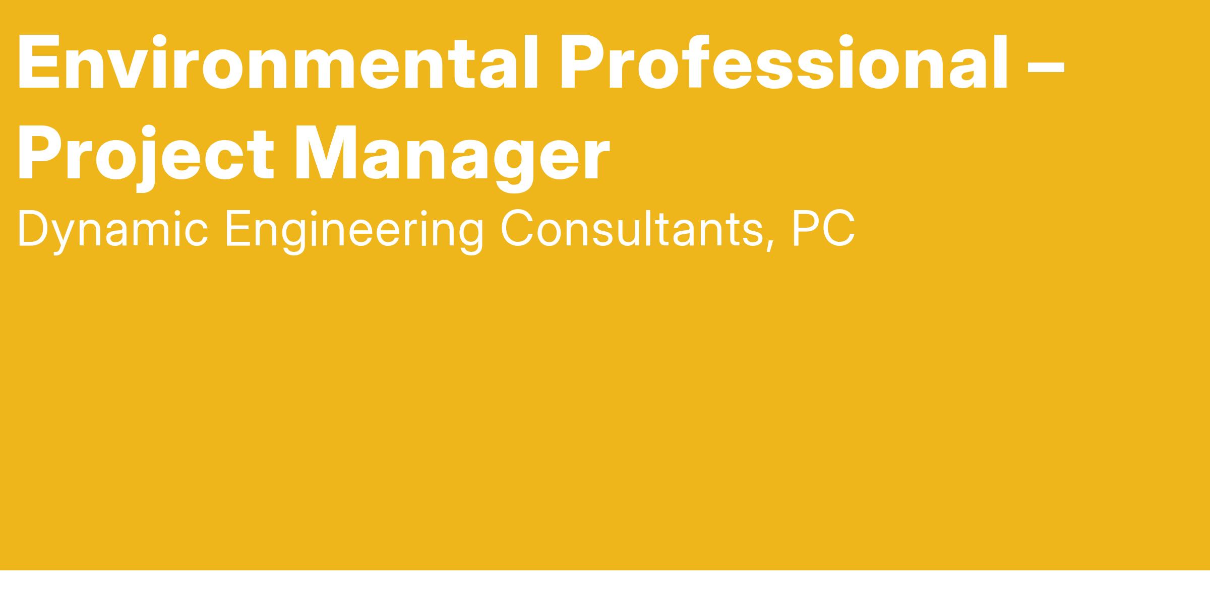 The Environmental Professional - Project Manager is responsible for project management, leadership, profitability and client management. Responsibilities include project management, coordination and oversight of field operations, technical proposal preparation, project budgeting and profitability, mentoring staff and staff supervision and project scheduling.