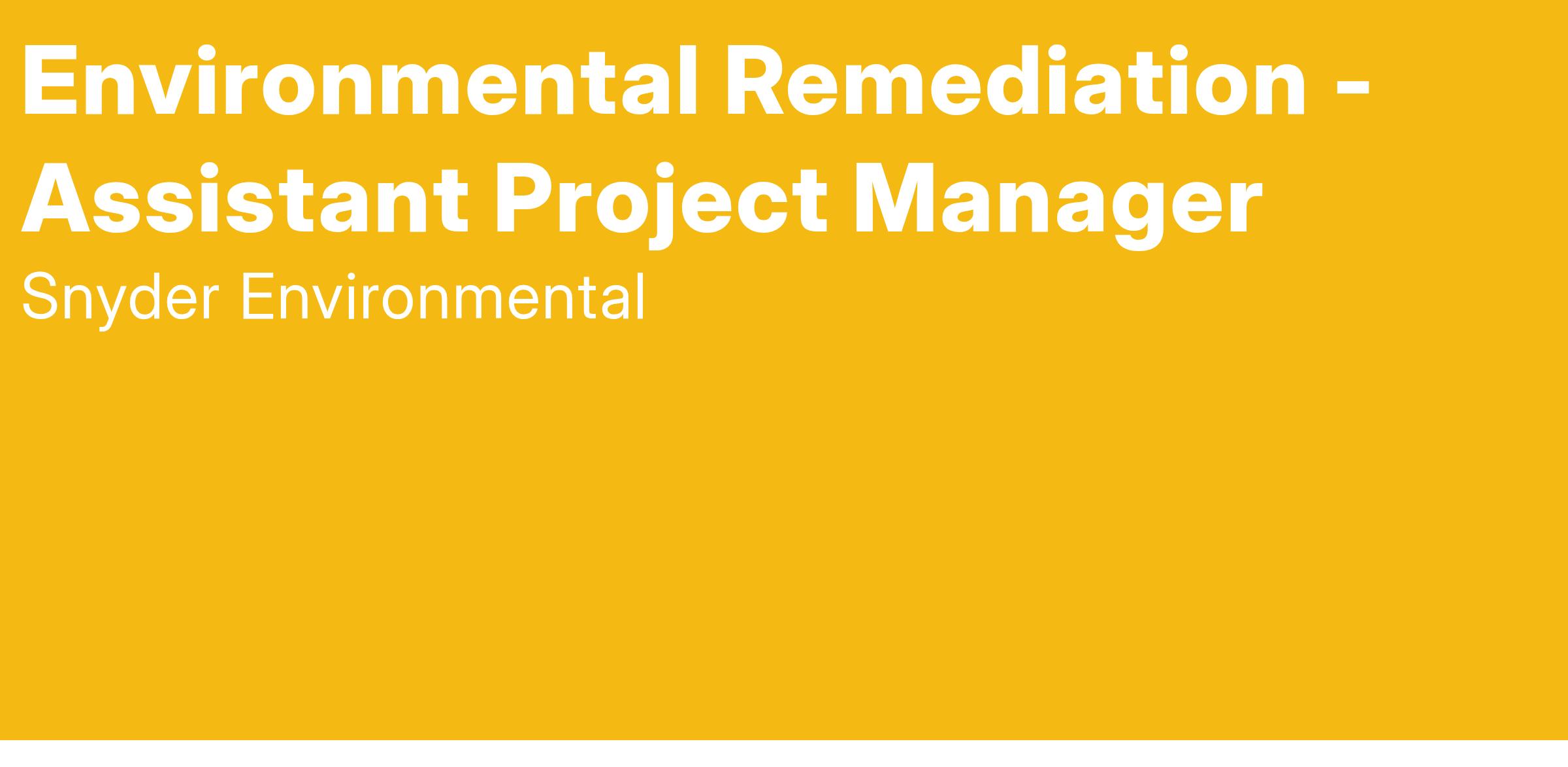 Snyder Environmental is seeking an assistant project manager to support our estimating team by performing routine yet critical tasks for estimate preparation and project submittals and close outs. This is an entry level position with great runway for quick career path development. The right individual will graduate from assisting project estimators to estimating their own projects in as little as a year. This is a great opportunity for recent graduates with environmental science or construction management degrees to get their foot in the door on a thriving industry that serves to better our communities.