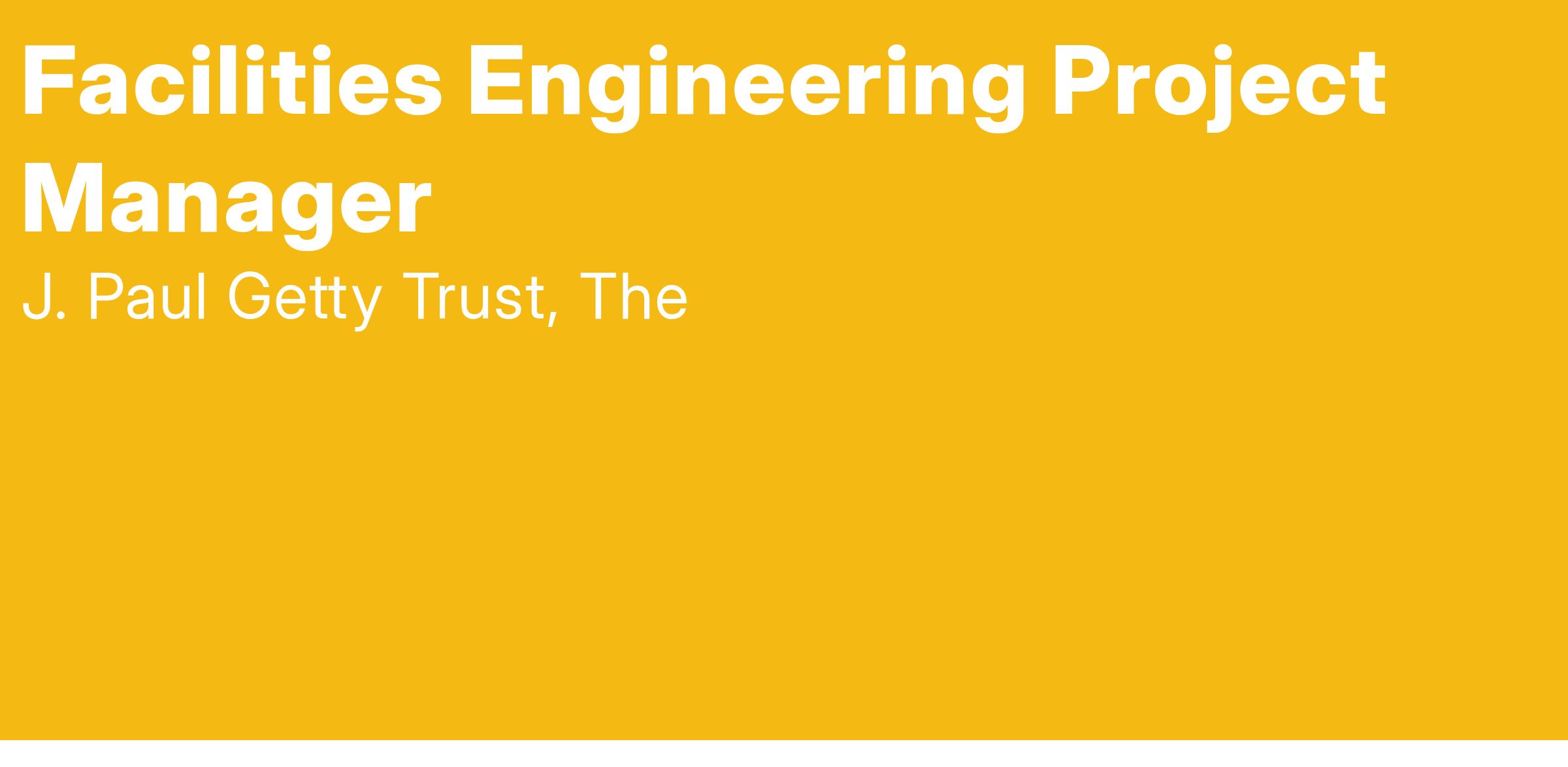 Coordinates, manages and directs facilities planning, renovation, and relocation projects for the Getty. Develops design criteria with architects and Contractors to ensure future operational requirements and long-term needs and technological developments are identified and provided. Represents the Engineering shop for major capital projects, ensuring future operational and maintenance requirements are addressed and provided for during the design and construction process. Analyzes logistical requests and solutions for conformity with the Getty’s overall goals. Ensures that design, processes, and specifications align with Getty needs and goals. Assists in the development of project budgets and schedules and impacts to on going operations, monitors expenditures and schedules and coordinates meetings with outside contractors, consultants, and personnel affected by the projects. Monitors the progress of work in the field in order to ensure adherence to program, budget and schedule. Researches problem areas and recommends cost effective solutions that meet program requirements. Performs complex project management work including all aspects of project management during development, planning, design, construction, and final close-out. This position is required to interface with a variety of departments, including staff, administrators, curators, LA Department of Building and Safety, LA Department of Water and Power, LA Fire, California Public Utility Commission, various professional consultants, contractors, and vendors, etc.