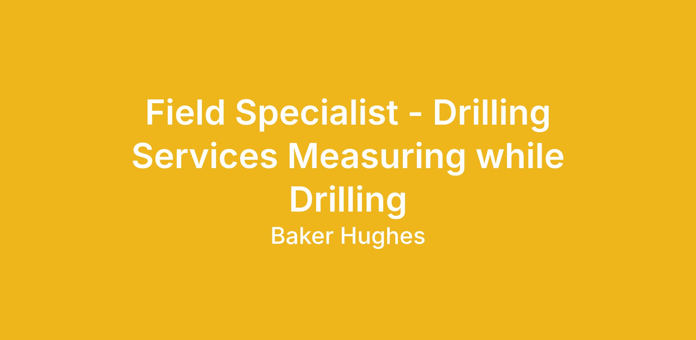 Field Specialist - Drilling Services (MWD - Measuring while Drilling)