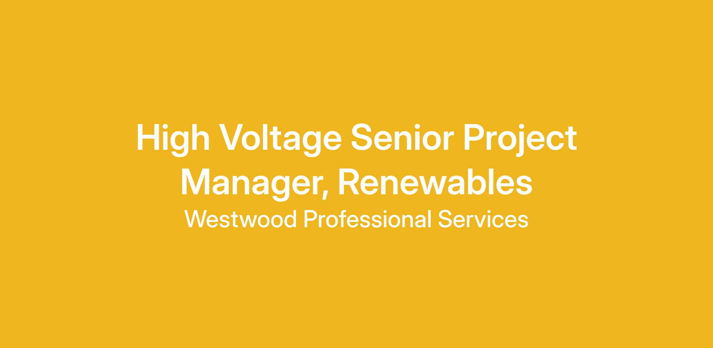 High Voltage Sr. Project Manager - Renewables