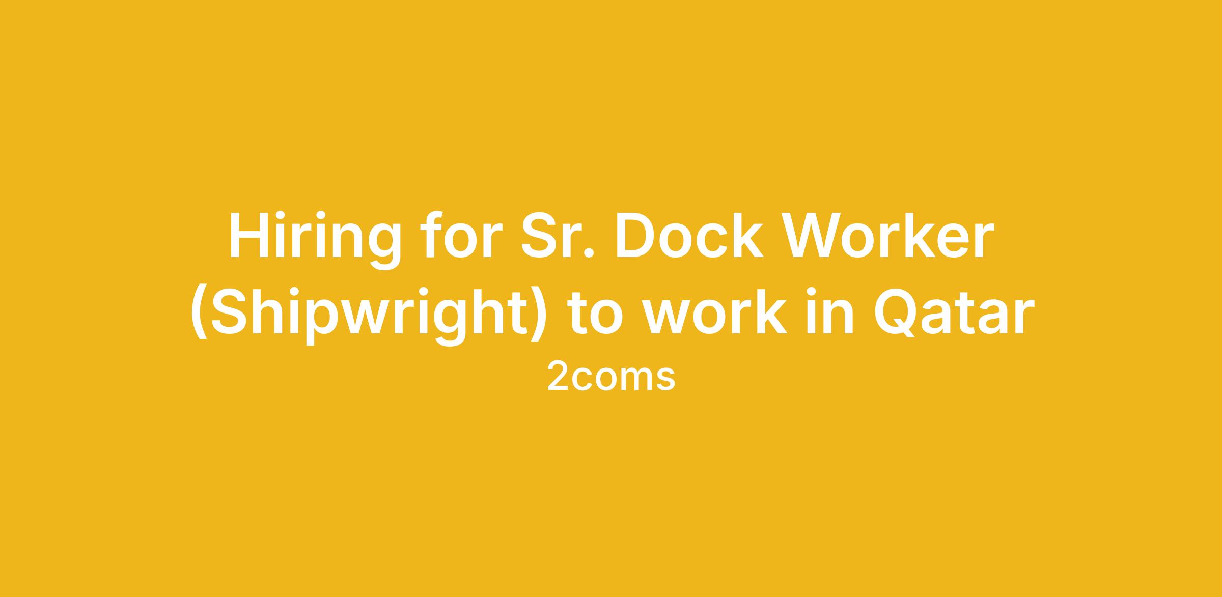 Openings – Qatar <\/p> <\/p> <\/span> Salary: <\/span><\/b>QAR<\/span> <\/span>1,800<\/span> per <\/span><\/b>month<\/span> The Sr. Dock Worker (Shipwright