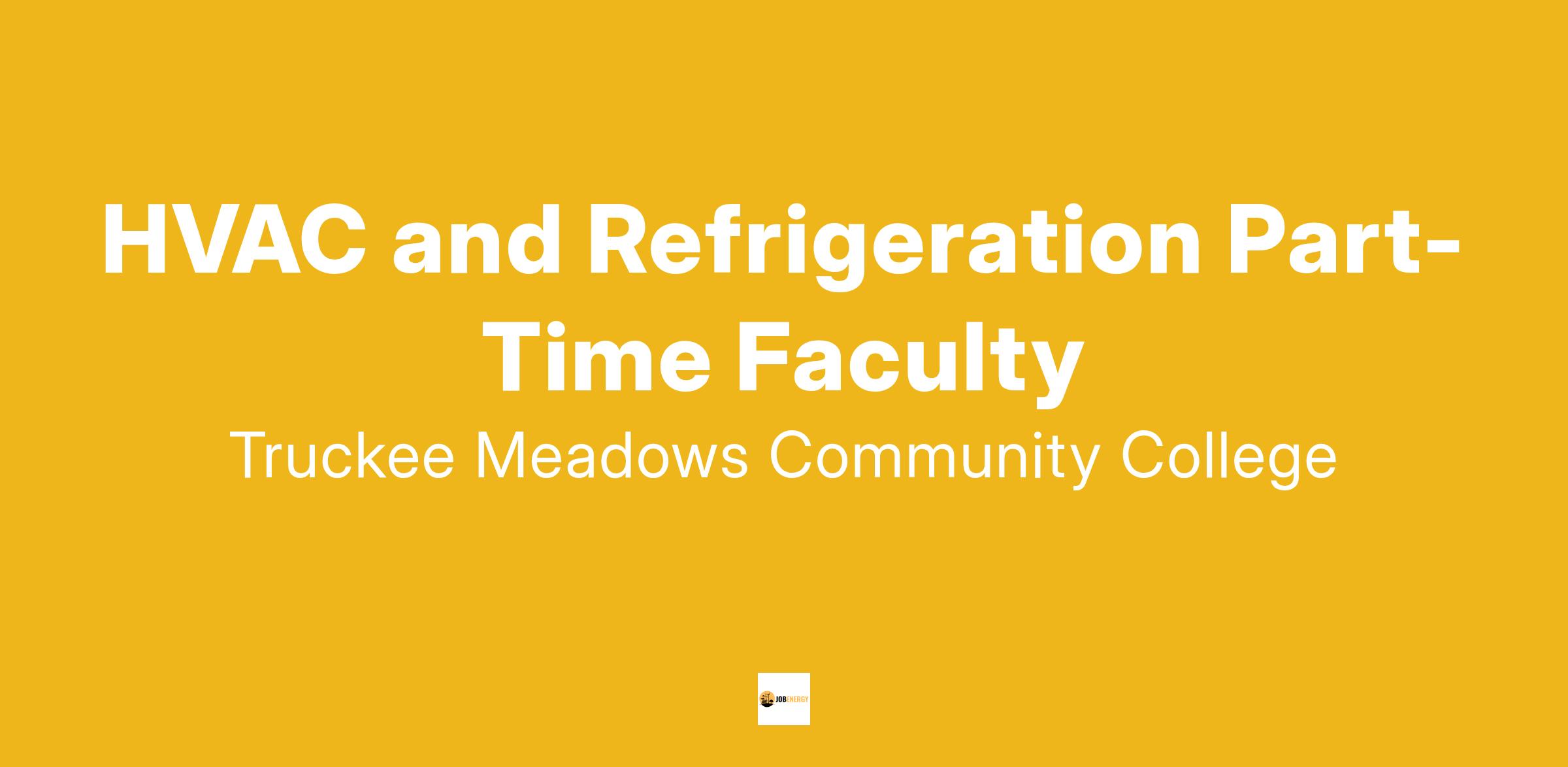 We want you! Truckee Meadows Community College (TMCC) is recruiting Part-Time Faculty to teach courses in air conditioning, HVAC, refrigeration for the Department of Air Conditioning / HVAC. The college welcomes qualified applicants from all backgrounds for temporary Part-Time Faculty teaching assignments. We seek a pool of qualified candidates to teach in-person, online, or hybrid courses when PT Faculty vacancies occur. Applications are always welcome, and qualified candidates are contacted when teaching opportunities become available.