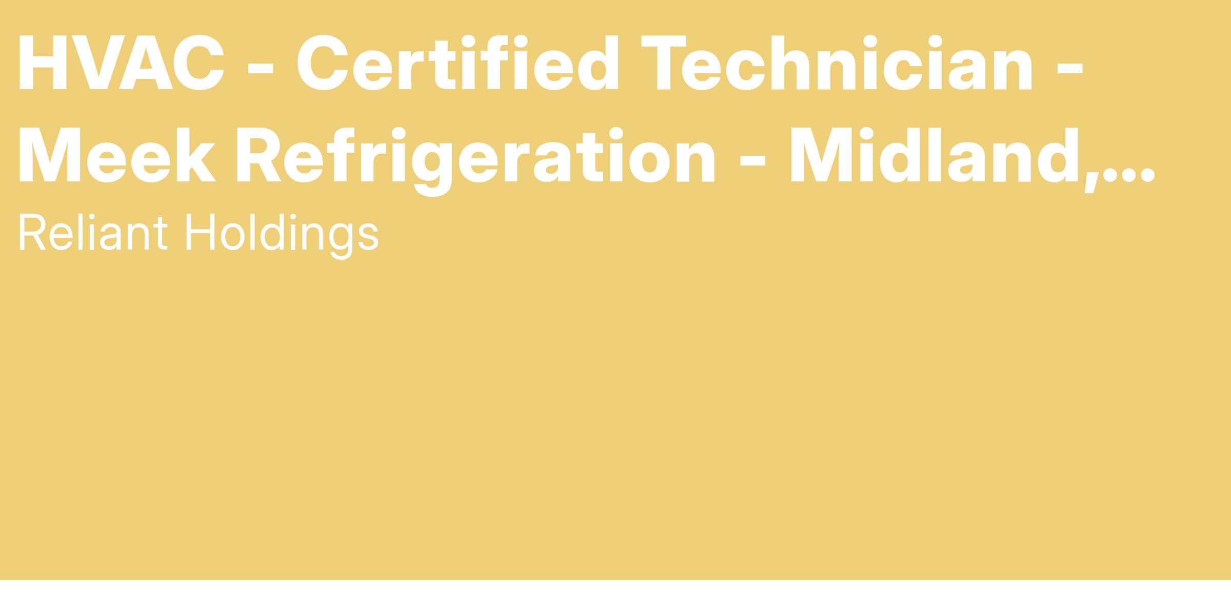 Are you an HVAC Certified Technician looking to join a dynamic team of professionals dedicated to excellence in the industry? As a Full Time Certified Technician at Meek Refrigeration in Midland, Odessa, and surrounding areas, you'll have the opportunity to showcase your problem-solving skills and expertise in HVAC systems. This exciting role allows you to work onsite, providing high-quality service to our valued customers.