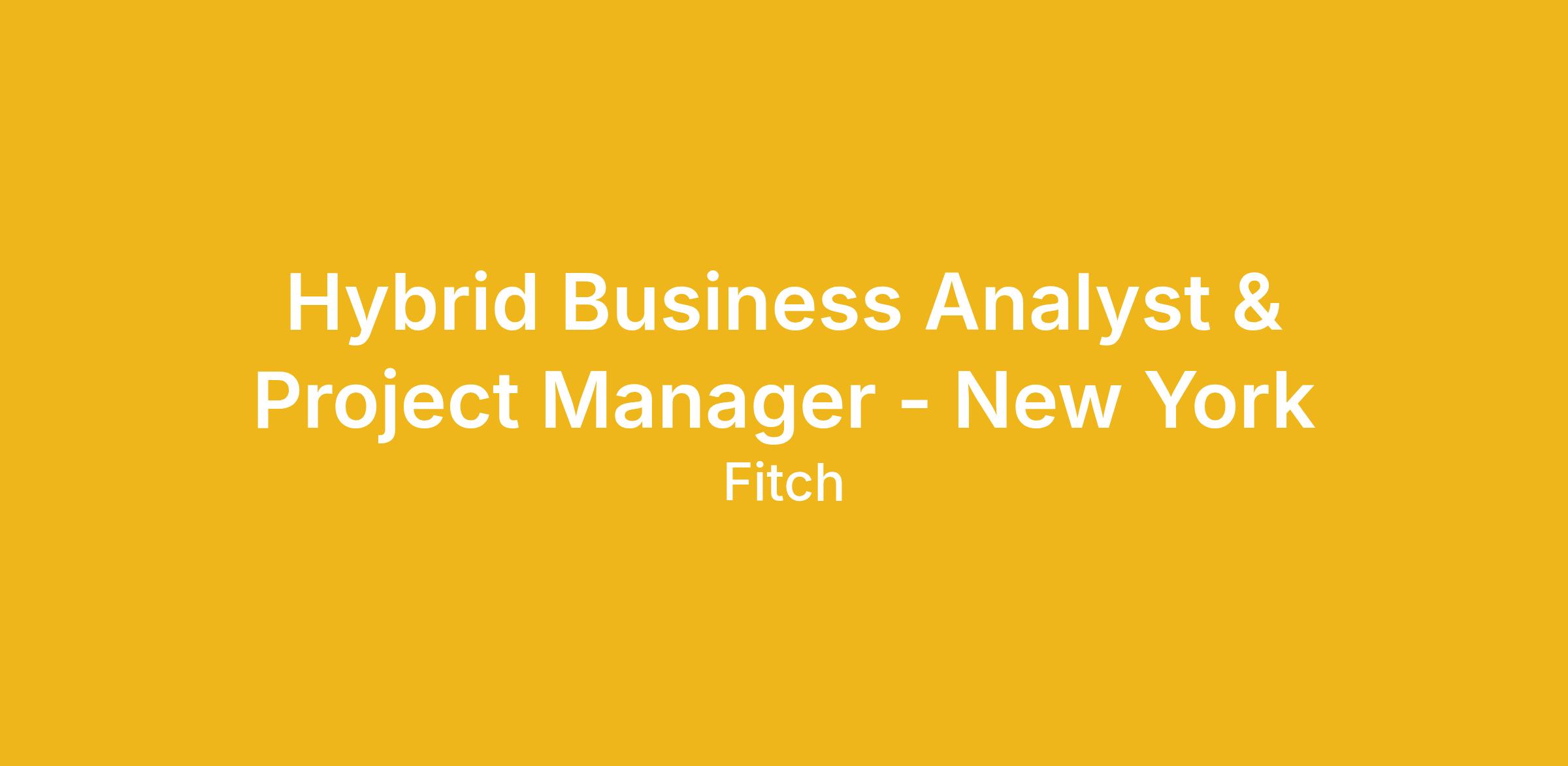 BRM - Revenue Enablement (Fitch Ratings) is currently seeking a Hybrid Business Analyst & Project Manager based out of our New York office.