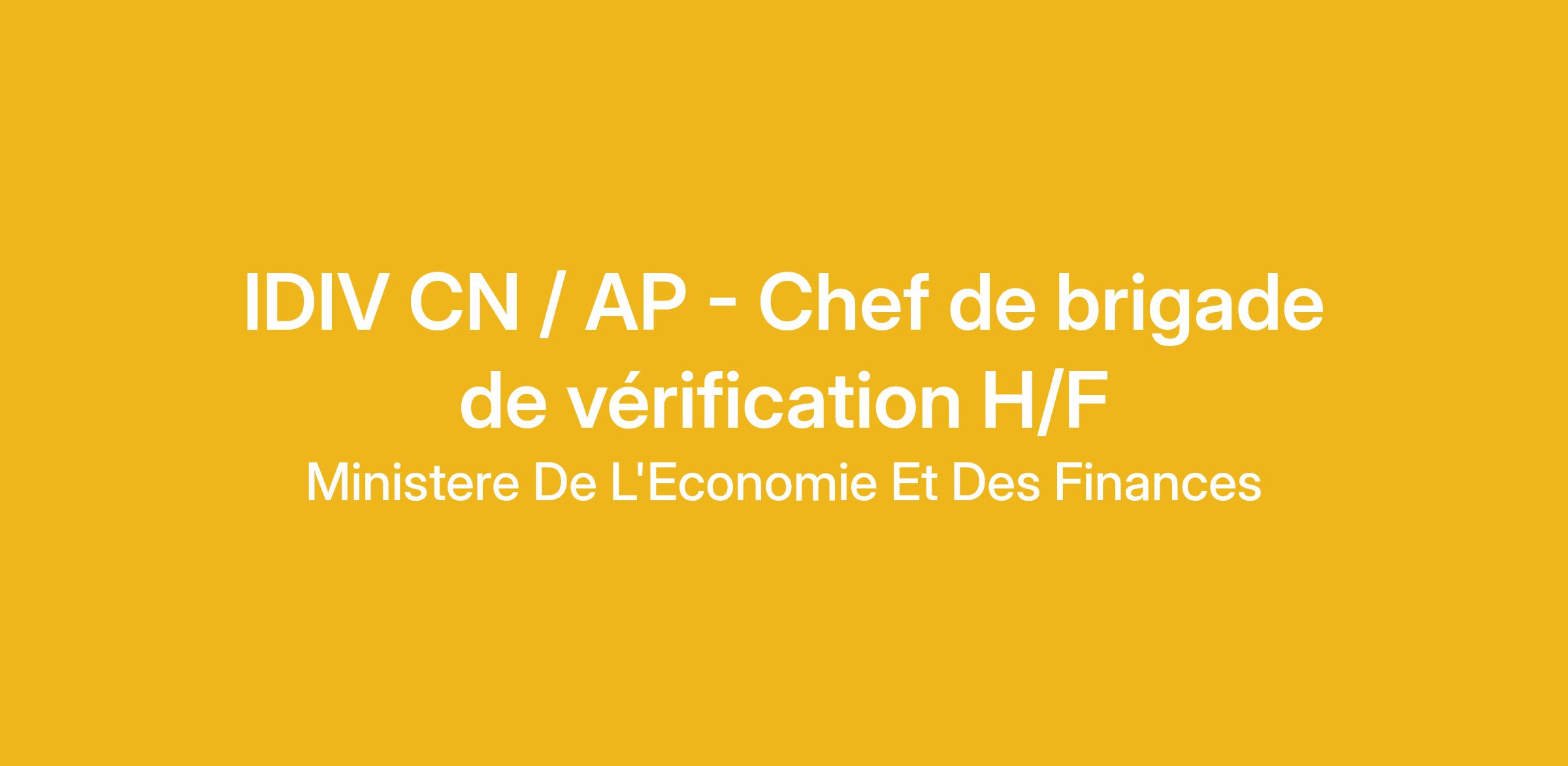 IDIV CN / AP - Chef de brigade de vérification H/F