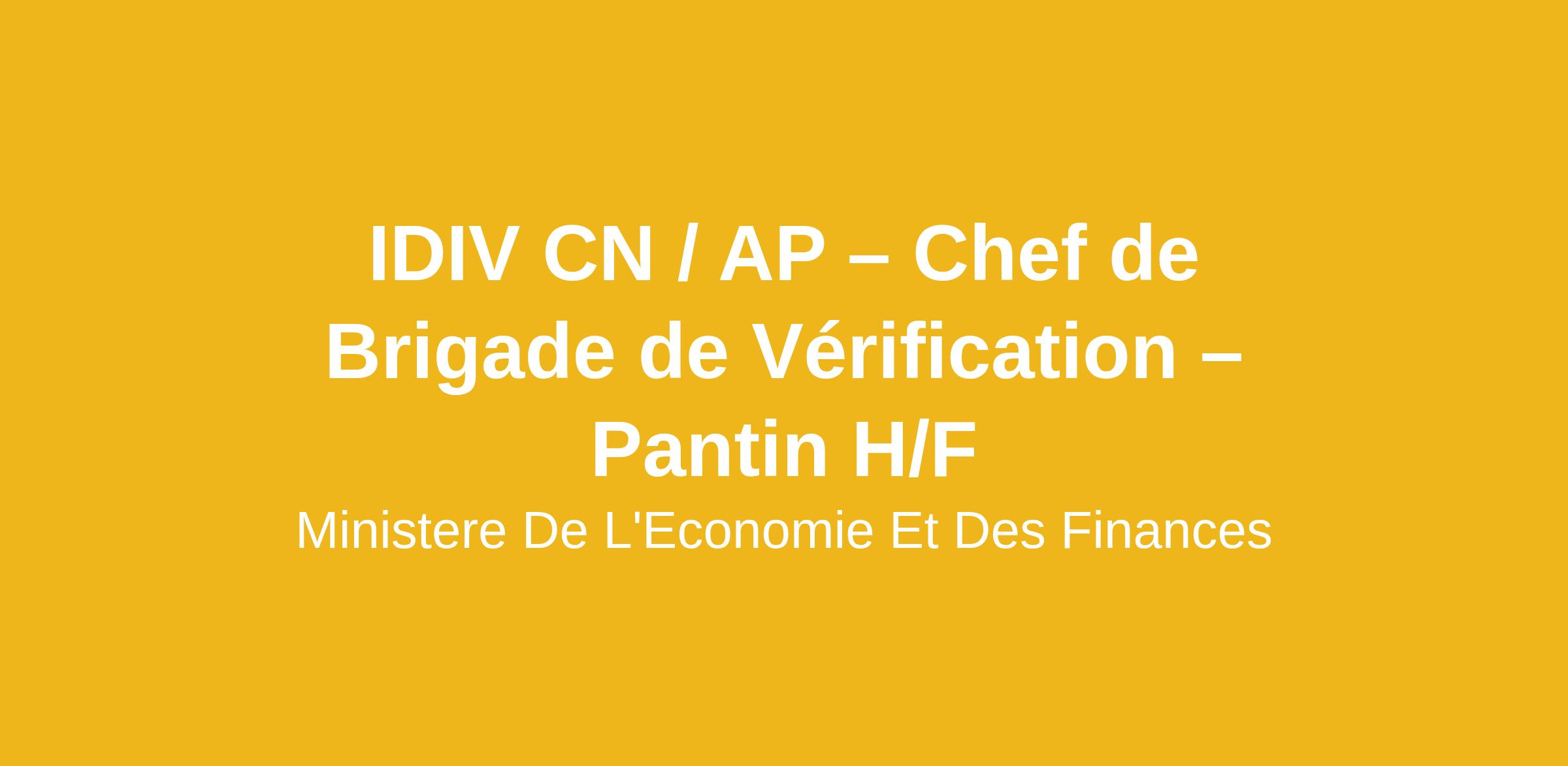 IDIV CN / AP – Chef de Brigade de Vérification – Pantin H/F