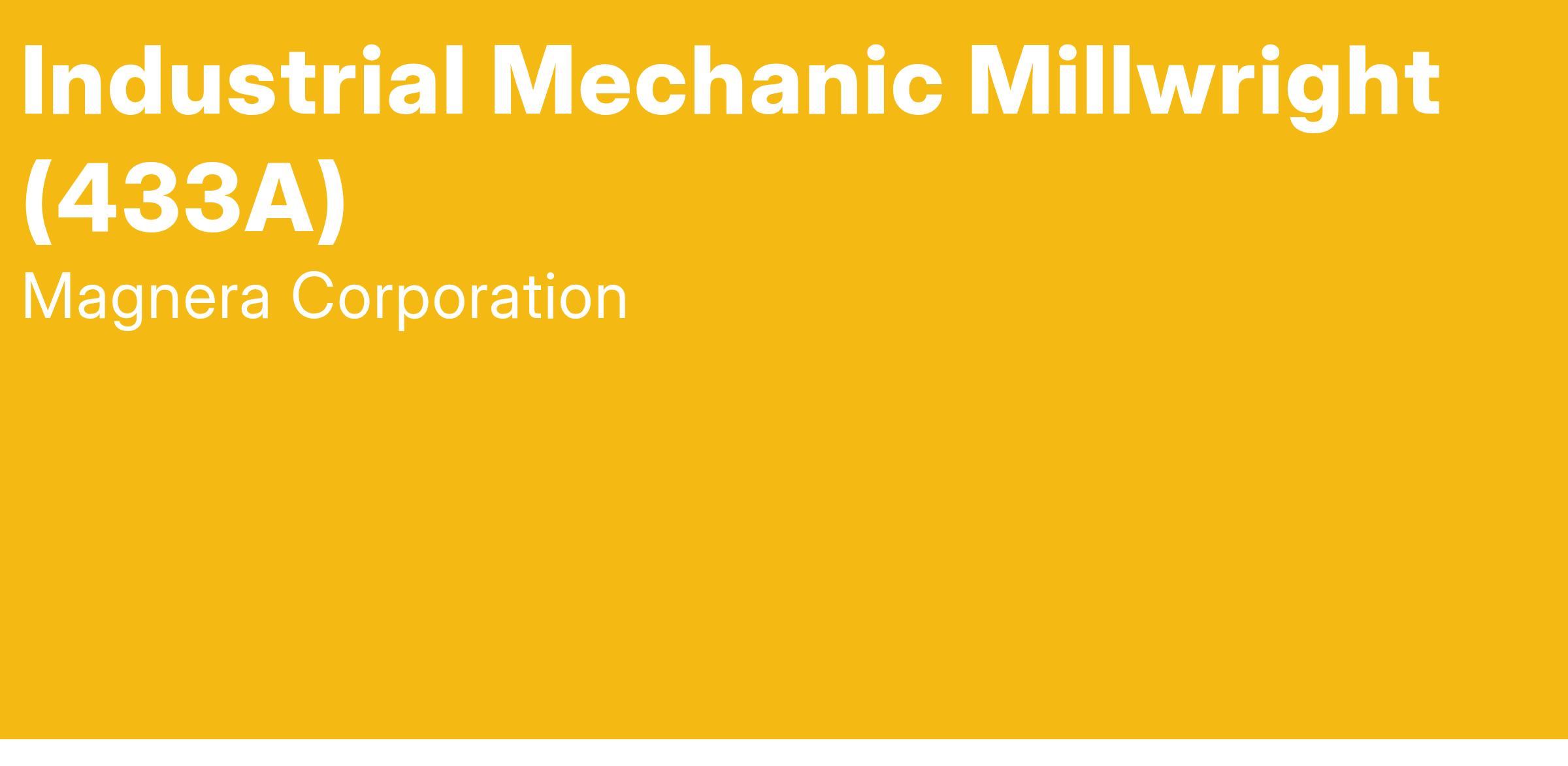 The licensed INDUSTRIAL MECHANIC/MILLWRIGHT is an integral part of our Maintenance Team, responsible for the improvement of overall equipment effectiveness and breakdown recovery. As a member of our team, you will take pride in your safety mindset, attention to quality and excellent attendance.