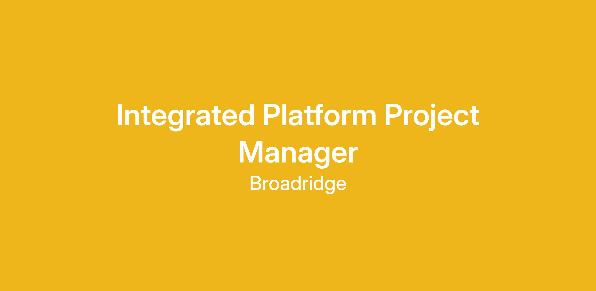 We are looking for an Integrated Platform Project Manager (Technology Professional – Delivery Lead) to join our team.