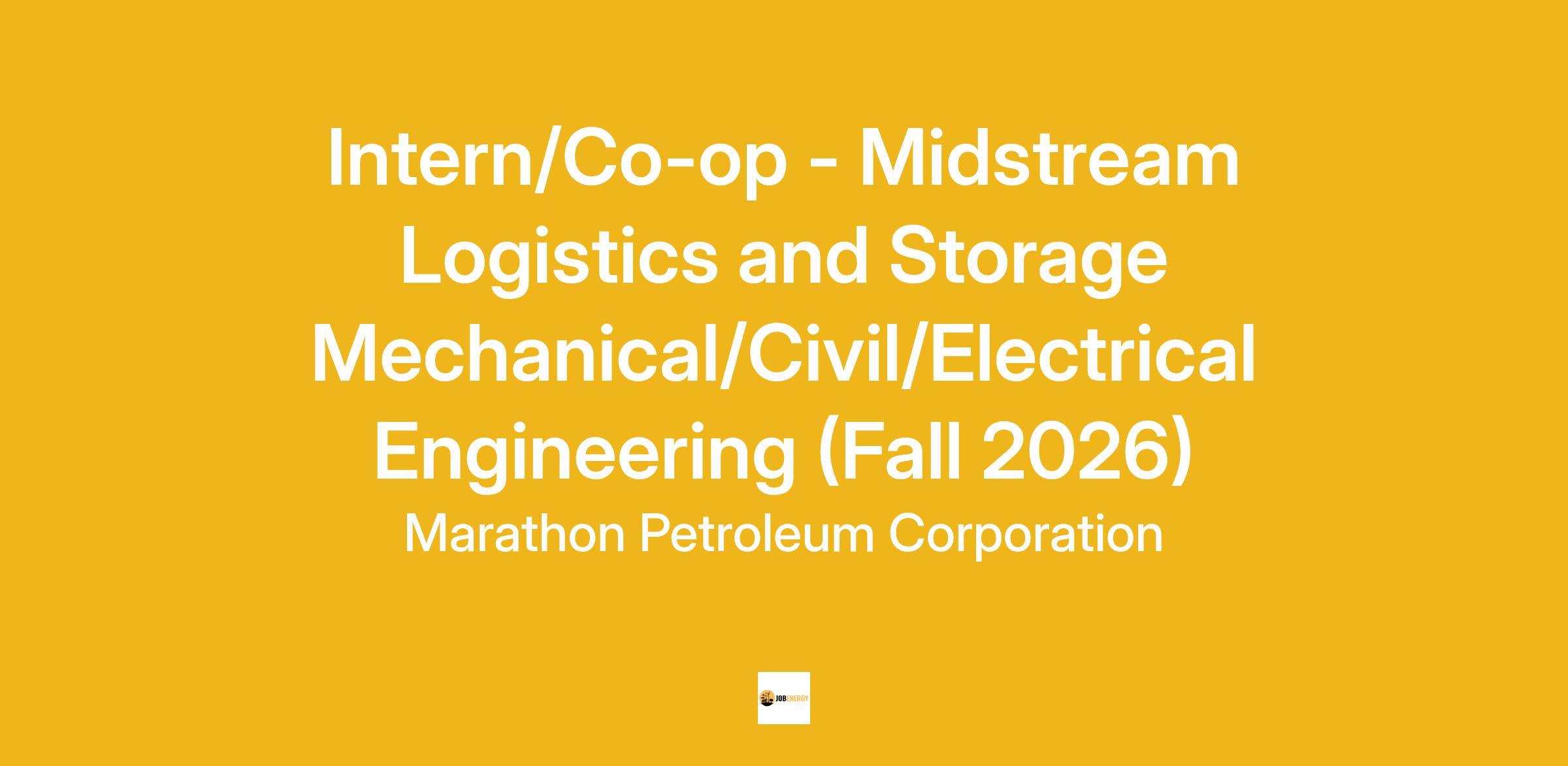 The purpose of the Logistics and Storage intern/co-op program is to identify and develop future technical and leadership talent for the benefit of MPC, the engineering intern/co-op, and the engineering profession.
