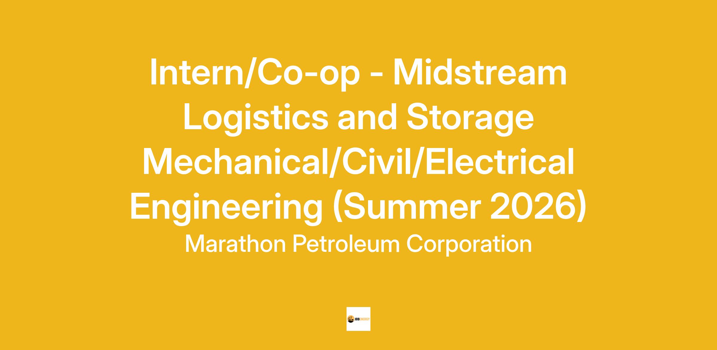The purpose of the Logistics and Storage intern/co-op program is to identify and develop future technical and leadership talent for the benefit of MPC, the engineering intern/co-op, and the engineering profession.