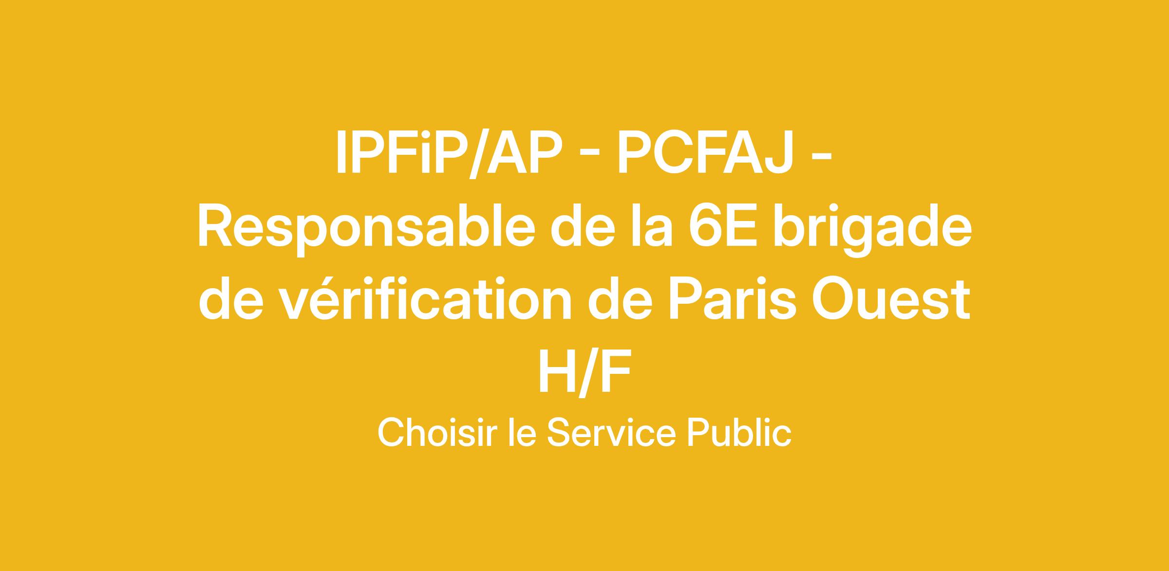 IPFiP/AP - PCFAJ - Responsable de la 6E brigade de vérification de Paris Ouest H/F