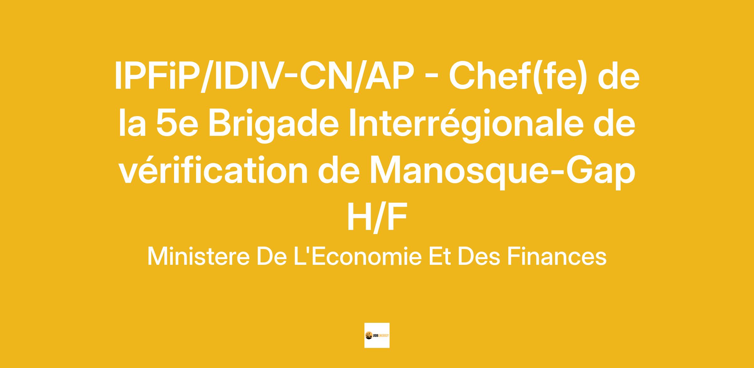 IPFiP/IDIV-CN/AP - Chef(fe) de la 5e Brigade Interrégionale de vérification de Manosque-Gap H/F