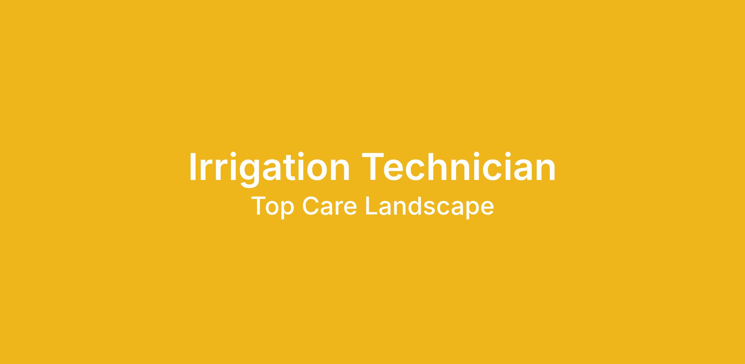 Top Care Landscape, LLC. is seeking a highly motivated individual to join our growing business as an Irrigation Technician.