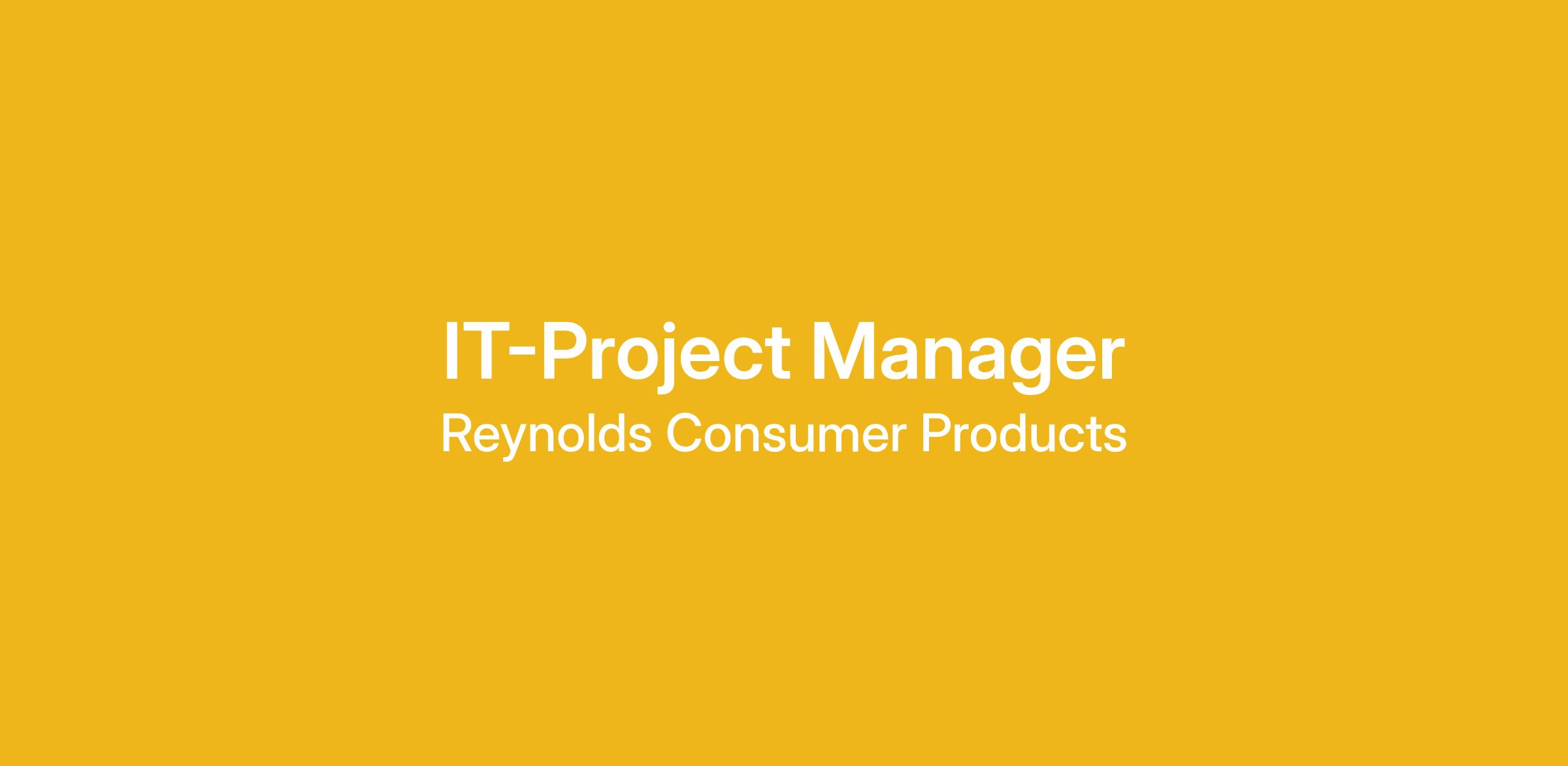 Join Reynolds Consumer Products…and Drive Your Career across a world of opportunities! We provide amazing job opportunities for growth with competitive salaries and benefits in an exciting, dynamic, fast-paced, and high-performance organization. Are you looking to build a strong career? Then we have an opportunity for you! We are searching for a IT-Project Manager to join our team located at our headquarters in Lake Forest, IL.