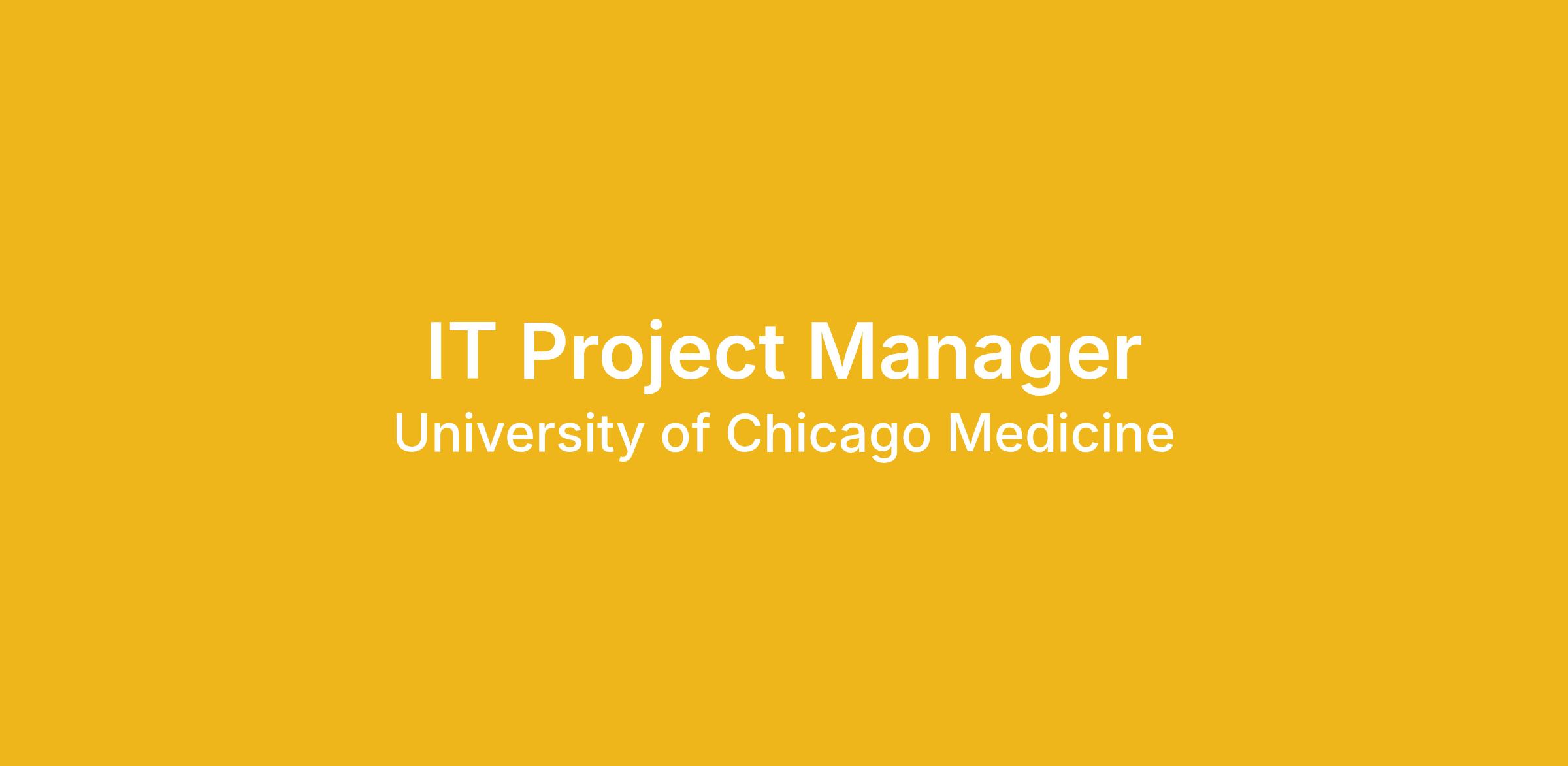 Join one of the nation’s most comprehensive academic medical centers, UChicago Medicine, as an IT Project Manager. This position will be primarily a work-from-home opportunity with the requirement to come onsite to our site locations around Chicagoland as needed. You will need to be based in the greater Chicagoland area.