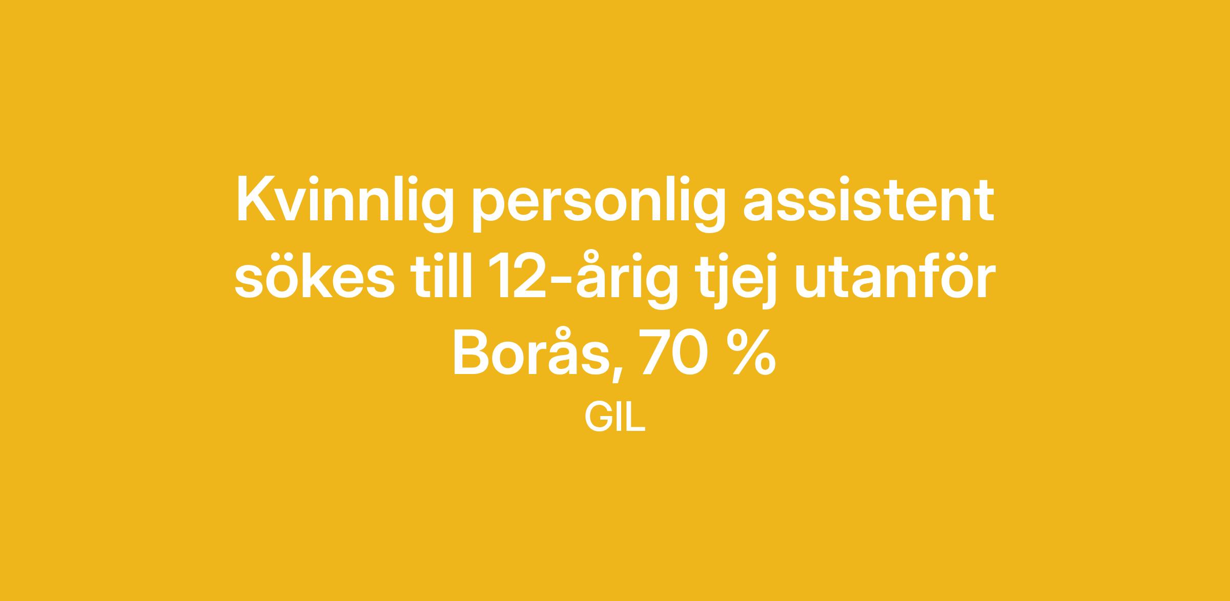 Vi söker en kvinnlig personlig assistent till en 12-årig tjej. Hon behöver ständig tillsyn, struktur och omvårdnad då hennes utvecklingsnivå är som en ettåring. Hon tycker om vattenlek, musik och att vara ute i alla väder.