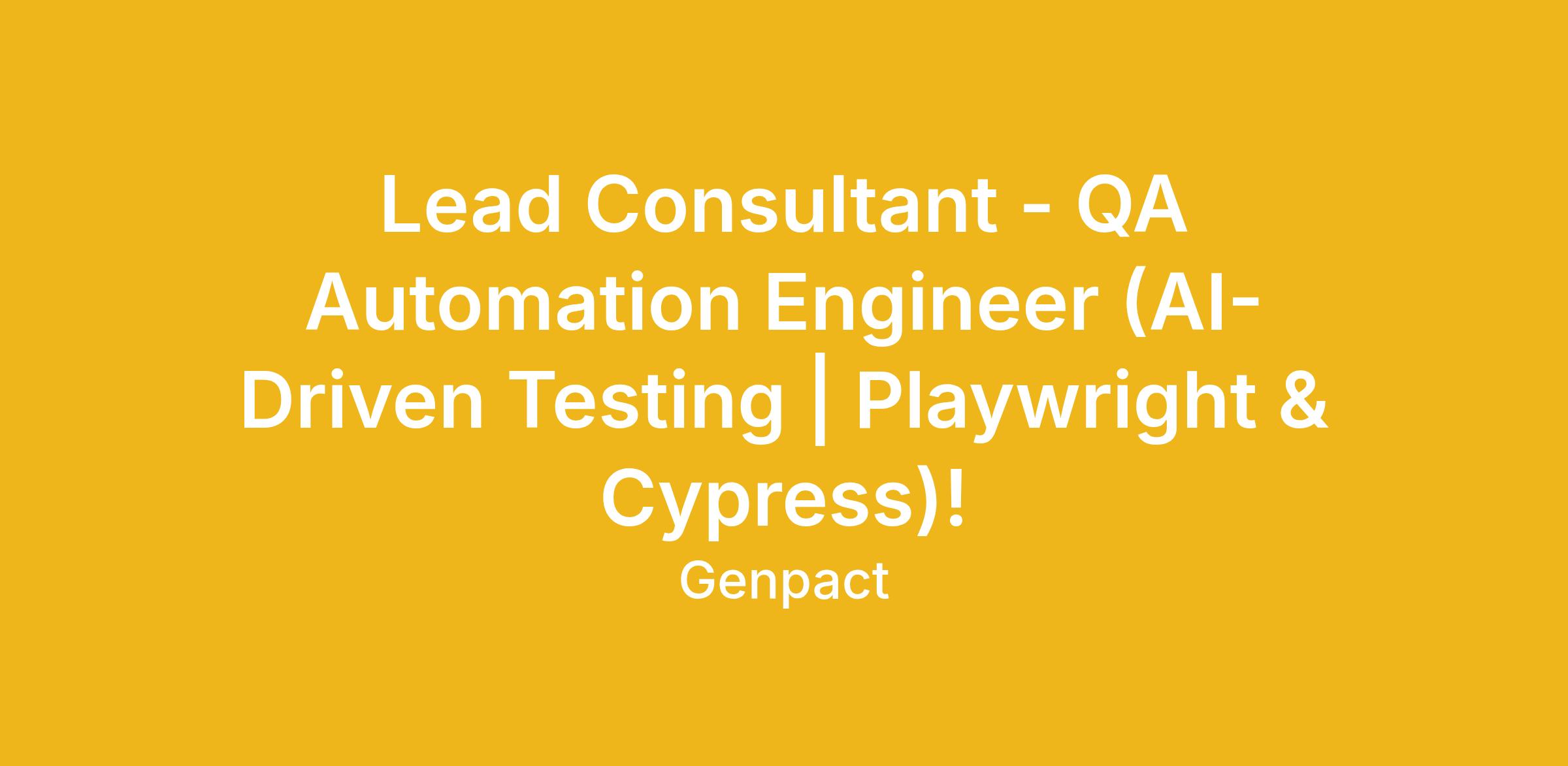 Inviting applications for the role of Lead Consultant QA Automation Engineer (AI-Driven Testing | Playwright & Cypress)!