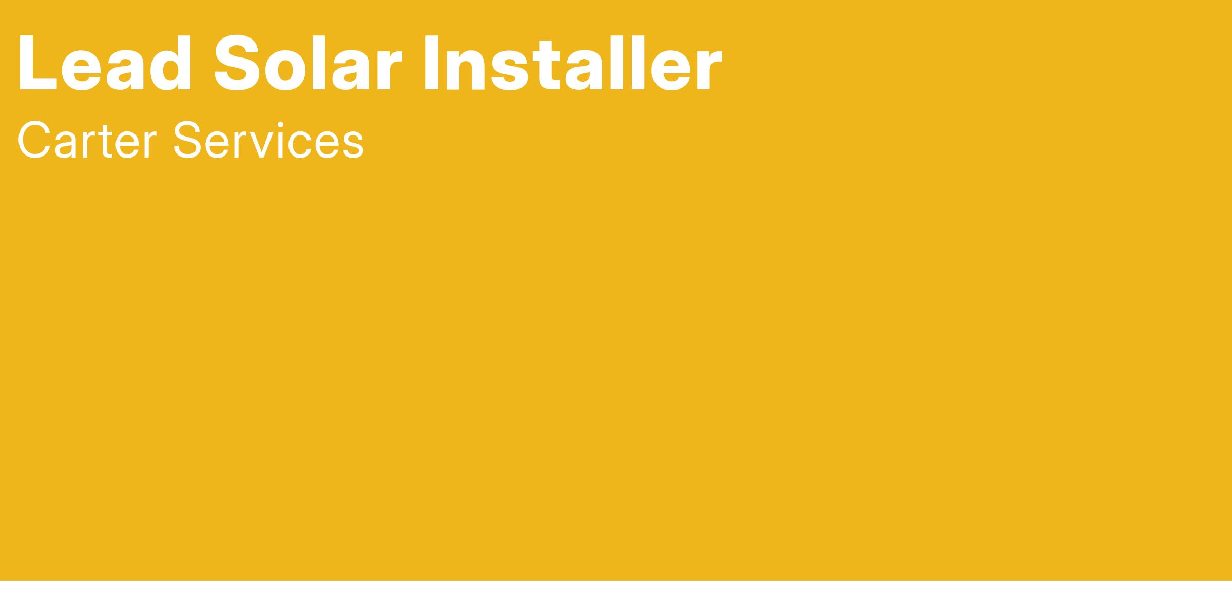 Carter Services, Inc. in Torrance, CA is hiring a Lead Solar Installer who's ready to get things DONE. This is a full-time contract position where you'll be overseeing installations and coaching your team in doing an excellent job.