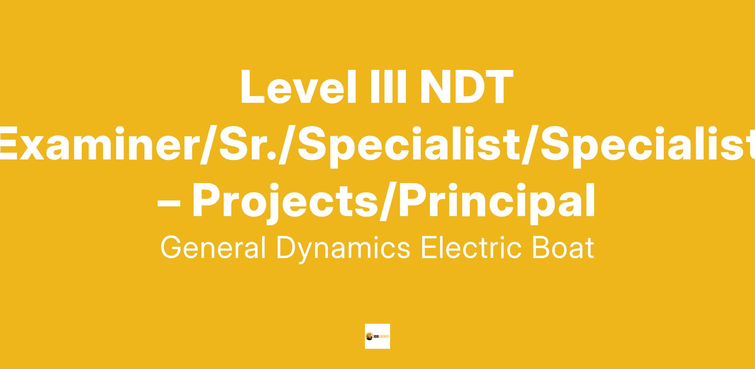The successful candidate will serve as a Level III Nondestructive Test (NDT) Examiner supporting Electric Boat’s Groton and Quonset Point, RI facility. Potential candidates could be stationed at Groton or Quonset Point with travel required between facilities. The successful candidate will report directly to the Quonset Point NDT Engineering (NDTE) Supervisor. Primary responsibilities are to develop and qualify NDT procedures for specific applications, review and monitor the NDT training programs and performance of Level I and Level II personnel, and administer examinations to certify/recertify Level I and Level II personnel. Special projects will be assigned at the discretion of the NDTE Supervisor. The Examiner will provide technical guidance and expertise for both nuclear and non-nuclear applications at Electric Boat.