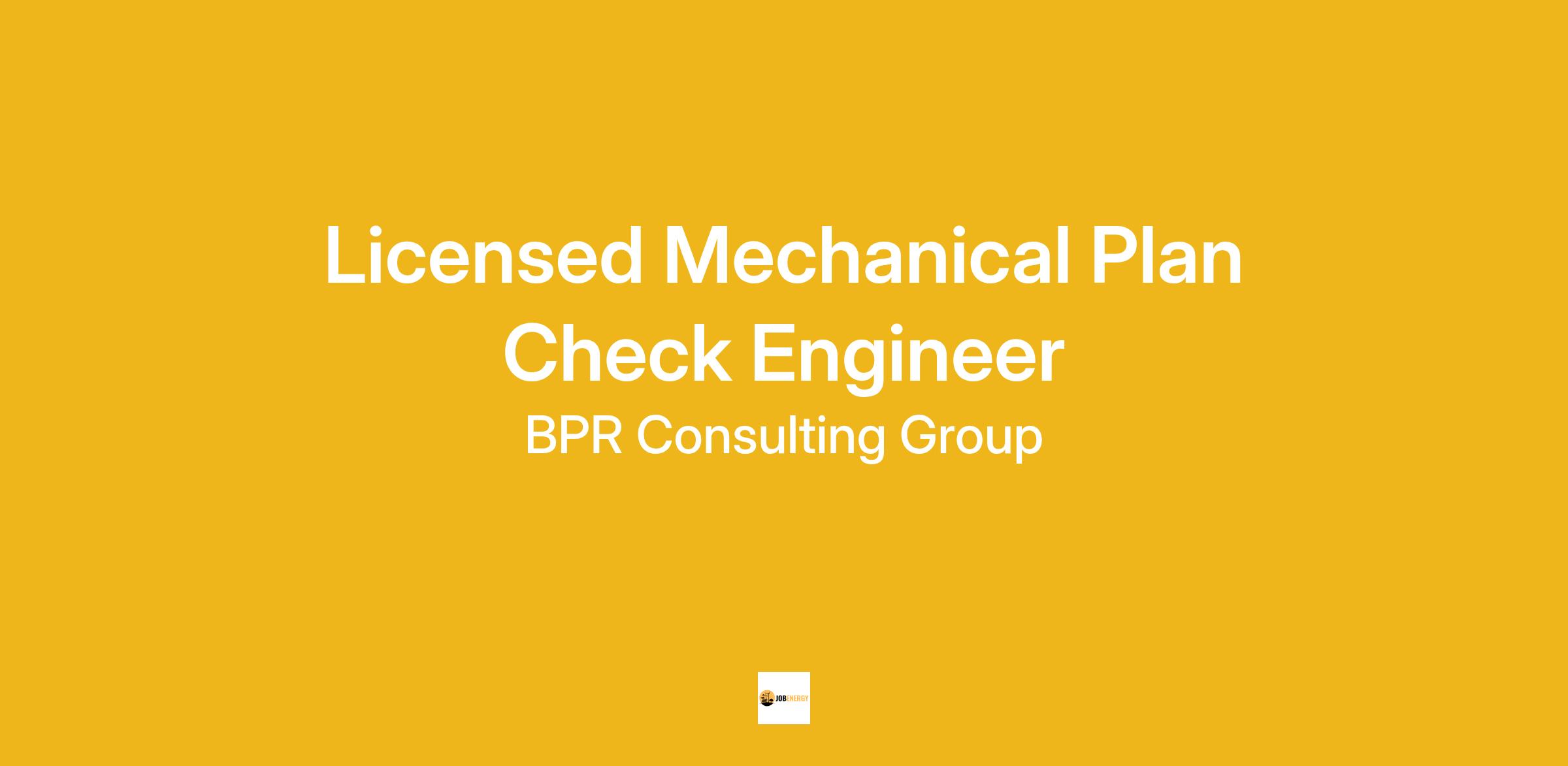 BPR Consulting Group (www.bpr-grp.com) is seeking an experienced and licensed Mechanical Engineer to join our growing company and serve our clients. Full-time and part-time opportunities are available for qualified candidates.