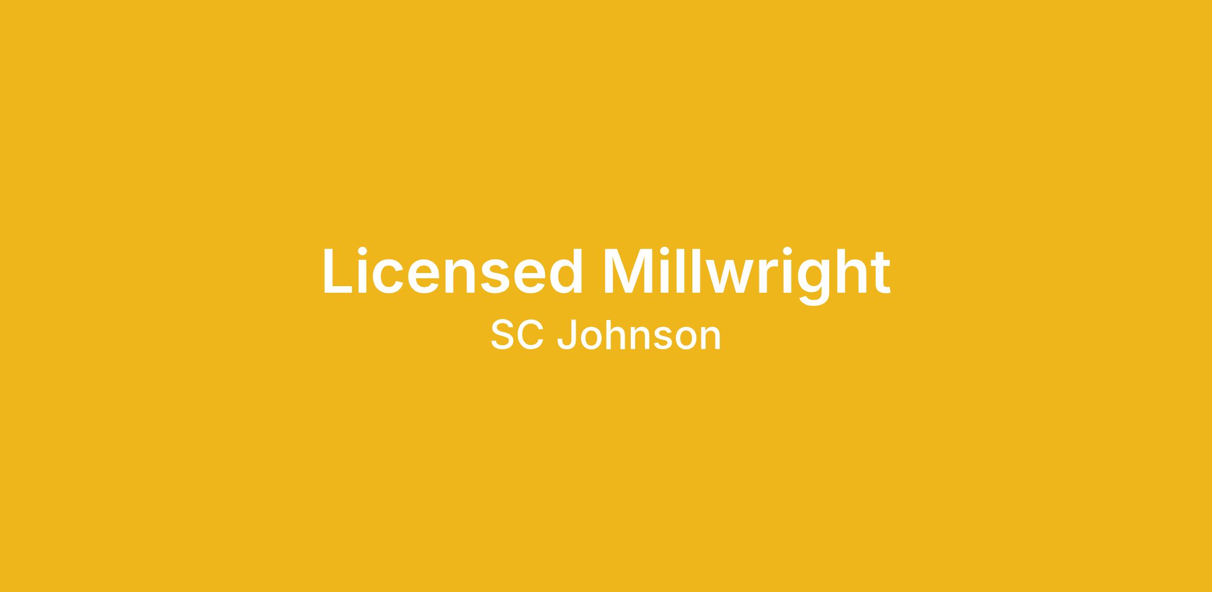 - Industrial Millwright license required.